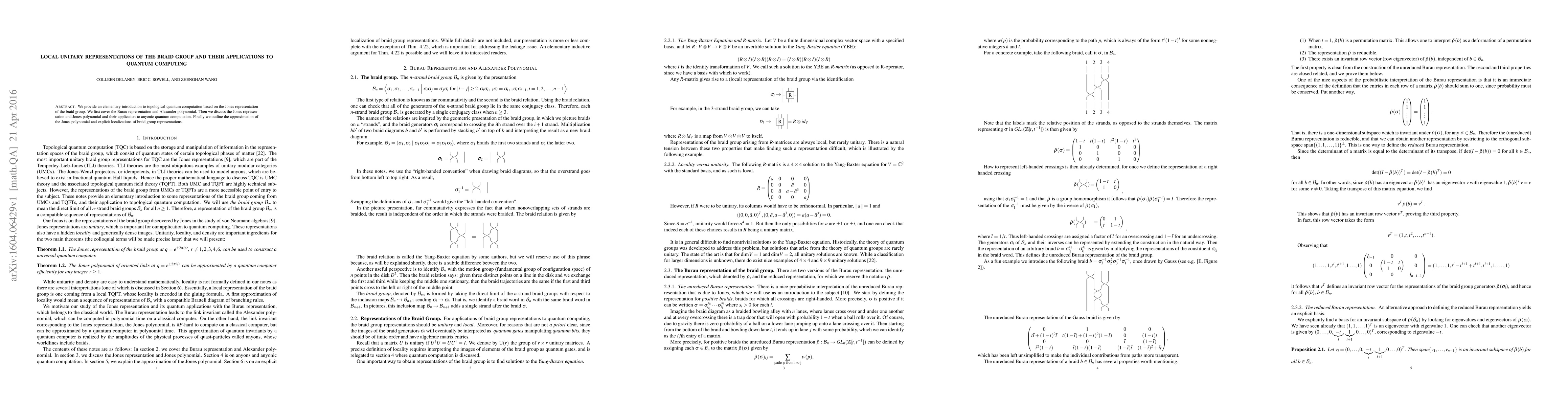 This paper introduces the Jones representation of the braid group and its applications in topological quantum computing, covering the Burau representation, Alexander polynomial, Jones polynomial, and their roles in anyonic quantum computation, along with approximations and localizations of braid group representations.