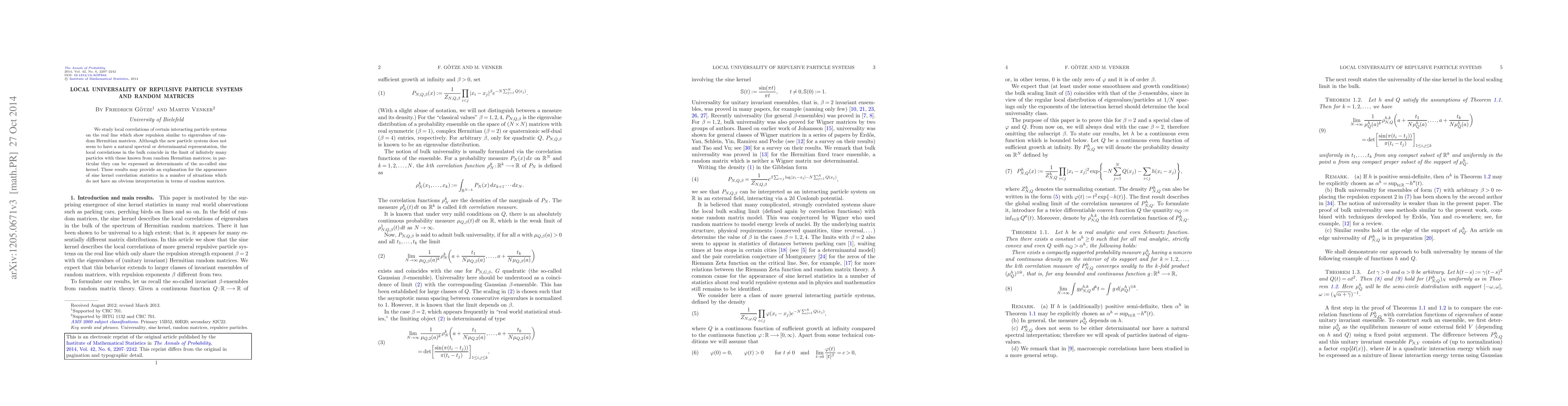 This paper investigates local correlations in repulsive particle systems on the real line, revealing that their bulk behavior matches that of random Hermitian matrices, specifically through the sine kernel determinant, despite lacking a spectral representation. This finding may explain the sine kernel's appearance in contexts unrelated to random matrices.
