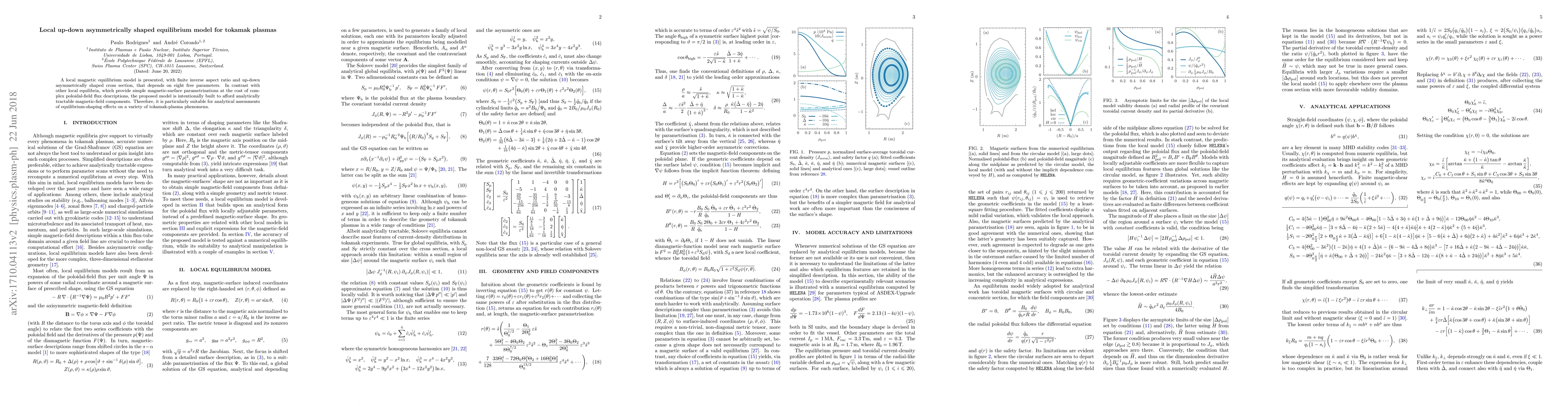A local magnetic equilibrium model is presented, with finite aspect ratio and up-down asymmetrically shaped cross section, that depends on eight free parameters. In contrast with other local equilibria, which provide simple magnetic-surface parametrizations at the cost of complex poloidal-field flux descriptions, the proposed model is intentionally built to afford analytically tractable magnetic-field components. Therefore, it is particularly suitable for analytical assessments of equilibrium-shaping effects on a variety of tokamak-plasma phenomena.