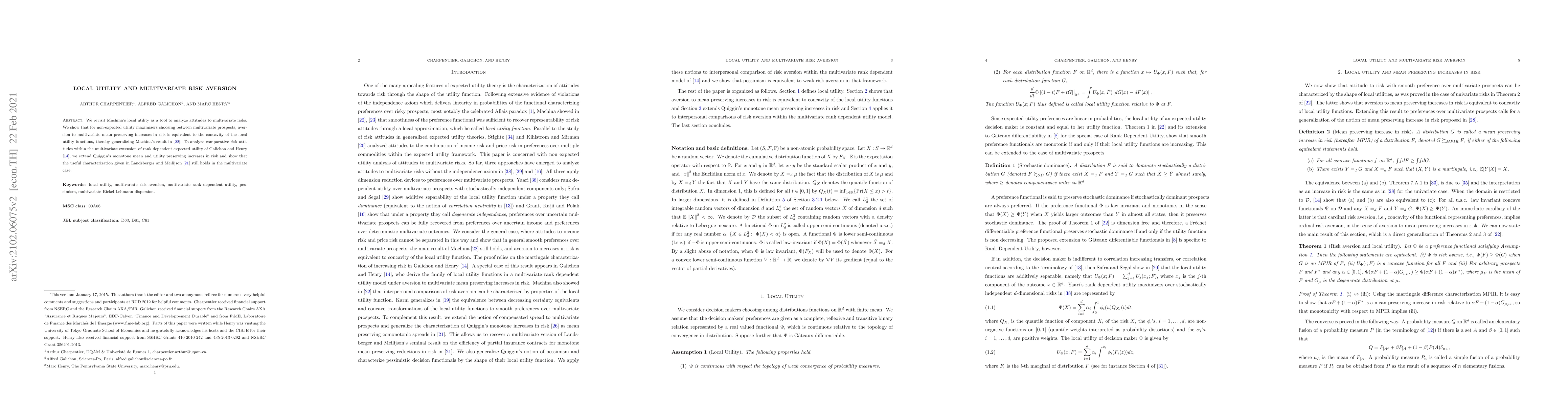 This paper generalizes Machina's local utility framework to analyze attitudes towards multivariate risks, showing that increased aversion to multivariate mean-preserving risk increases corresponds to the concavity of local utility functions. It also extends Quiggin's characterization of risk attitudes to multivariate rank-dependent expected utility, maintaining the useful comparative risk attitude characterization.