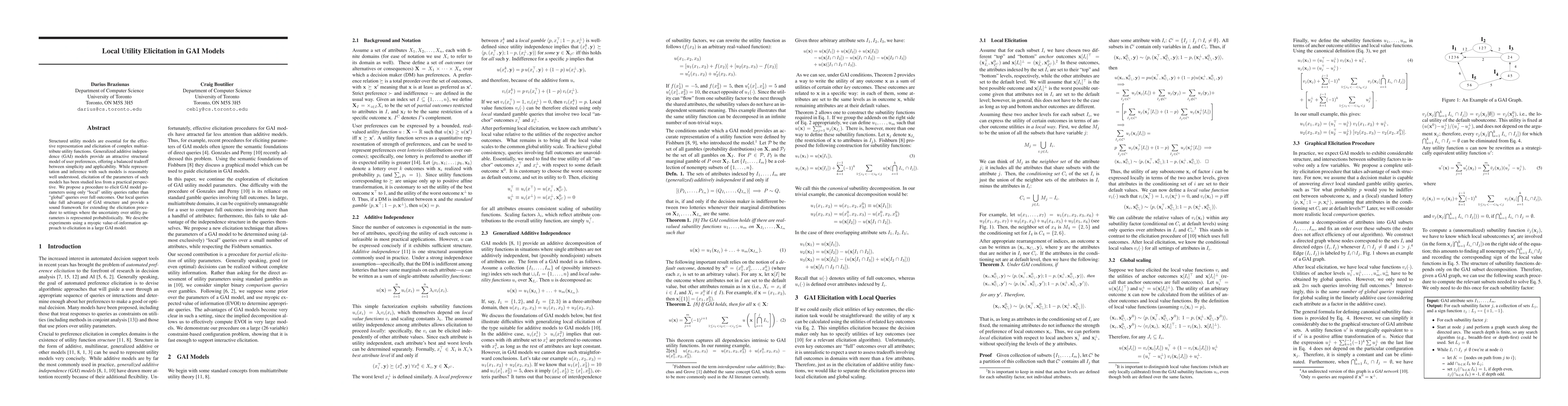 This paper proposes a method for eliciting parameters of Generalized Additive Independence (GAI) models through local utility queries, rather than global queries over full outcomes, leveraging the GAI structure for efficient elicitation. Experiments demonstrate the effectiveness of this approach using a myopic value-of-information strategy in a large GAI model.