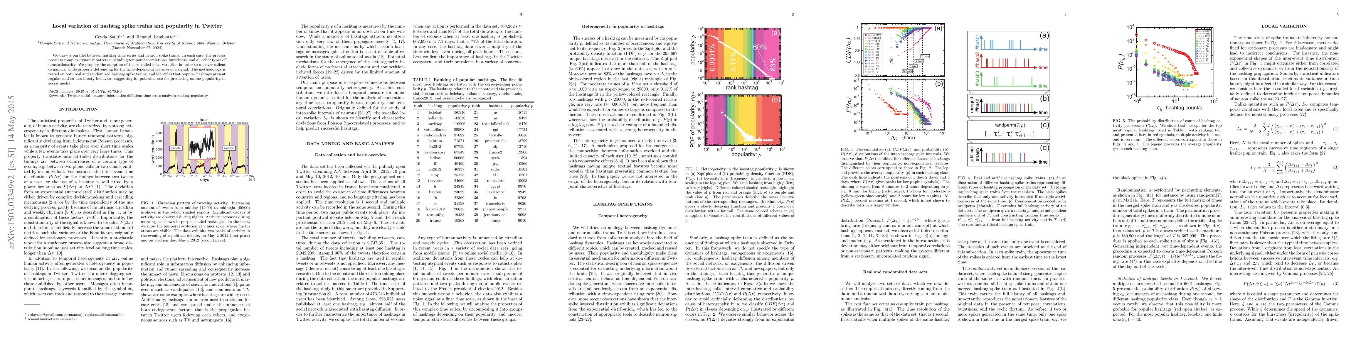 We draw a parallel between hashtag time series and neuron spike trains. In each case, the process presents complex dynamic patterns including temporal correlations, burstiness, and all other types of nonstationarity. We propose the adoption of the so-called local variation in order to uncover salient dynamics, while properly detrending for the time-dependent features of a signal. The methodology is tested on both real and randomized hashtag spike trains, and identifies that popular hashtags present regular and so less bursty behavior, suggesting its potential use for predicting online popularity in social media.