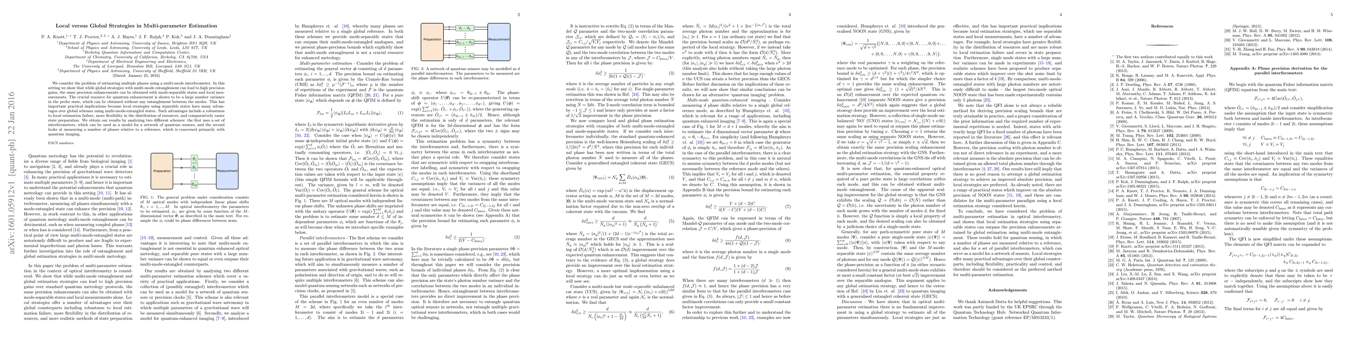 We consider the problem of estimating multiple phases using a multi-mode interferometer. In this setting we show that while global strategies with multi-mode entanglement can lead to high precision gains, the same precision enhancements can be obtained with mode-separable states and local measurements. The crucial resource for quantum enhancement is shown to be a large number variance in the probe state, which can be obtained without any entanglement between the modes. This has important practical implications because local strategies using separable states have many advantages over global schemes using multi-mode-entangled states. Such advantages include a robustness to local estimation failure, more flexibility in the distribution of resources, and comparatively easier state preparation. We obtain our results by analyzing two different schemes: the first uses a set of interferometers, which can be used as a model for a network of quantum sensors, and the second looks at measuring a number of phases relative to a reference, which is concerned primarily with quantum imaging.