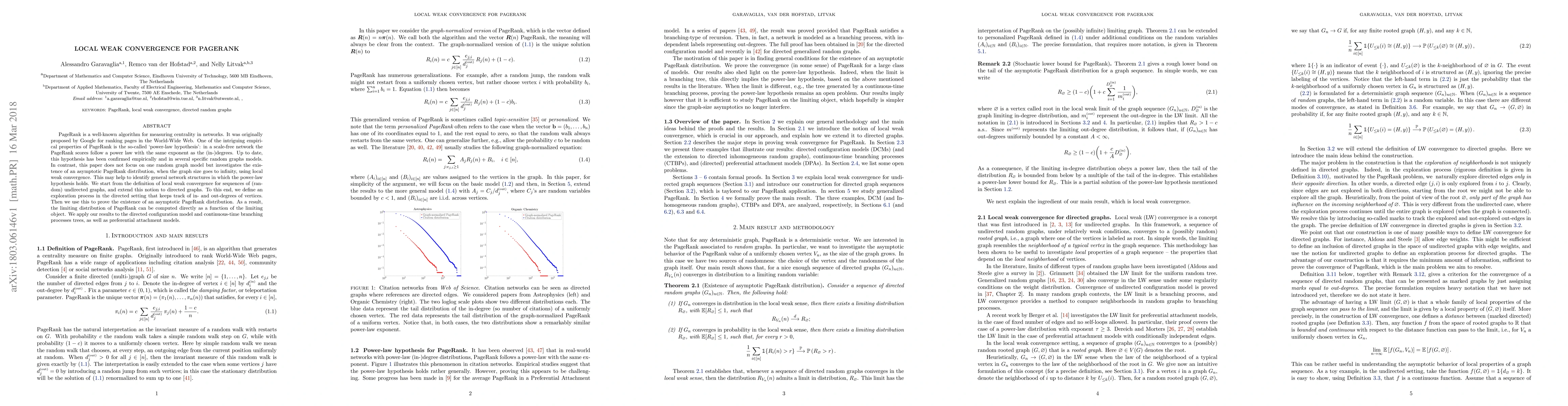 This paper investigates the asymptotic behavior of PageRank in large networks using local weak convergence, proving the existence of an asymptotic PageRank distribution. The results help identify general network structures where the power-law hypothesis of PageRank holds, applied to various models including the directed configuration model and preferential attachment models.