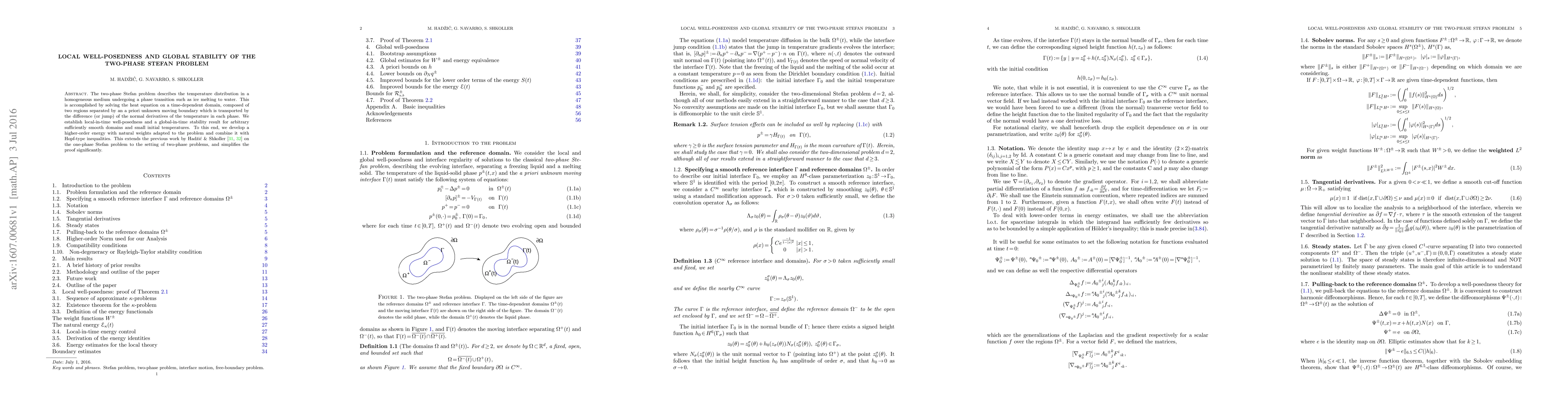 This research paper establishes local-in-time well-posedness and global stability for the two-phase Stefan problem, a model of phase transition in a medium, using a higher-order energy with natural weights and Hopf-type inequalities.