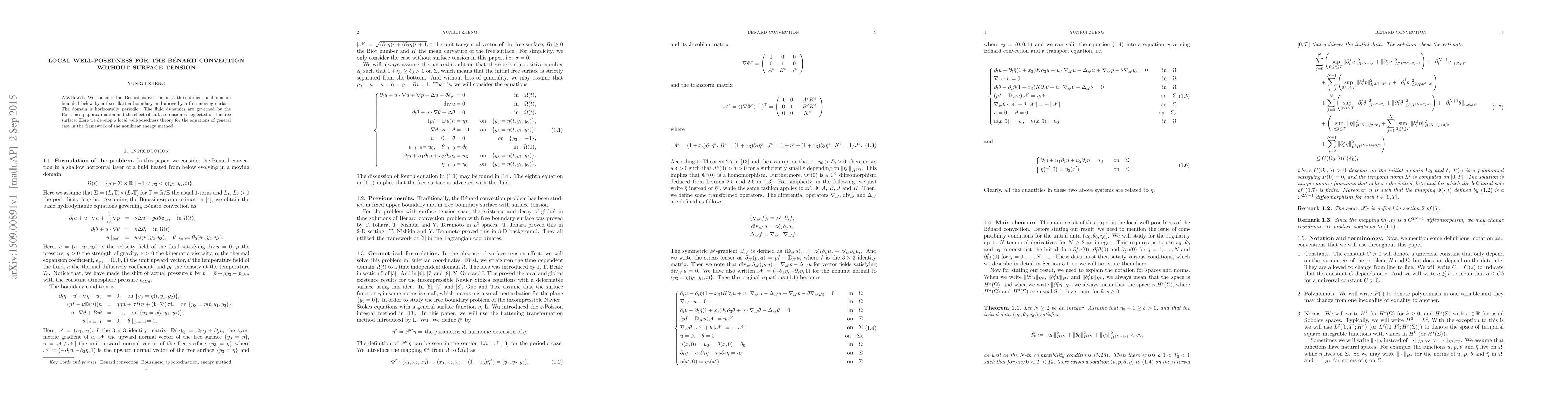 This paper develops a local well-posedness theory for the Boussinesq equations governing Benard convection in a three-dimensional domain with a fixed bottom and a free surface, without considering surface tension effects, using the nonlinear energy method.
