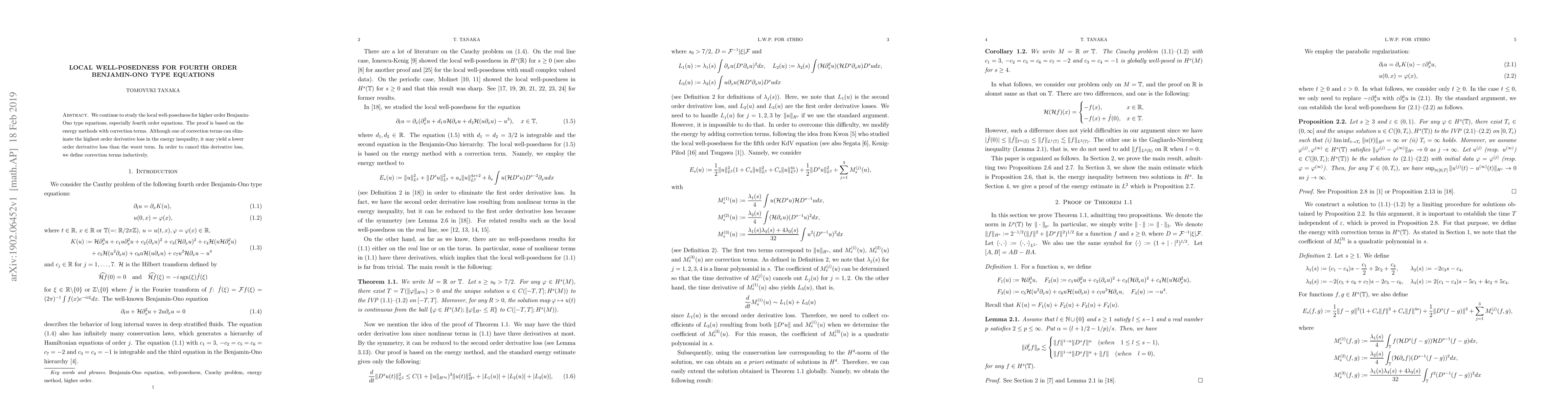 This paper investigates the local well-posedness of fourth order Benjamin-Ono type equations using energy methods and correction terms. While initial correction terms address the highest derivative loss, further inductive corrections are required to eliminate lower order derivative losses.