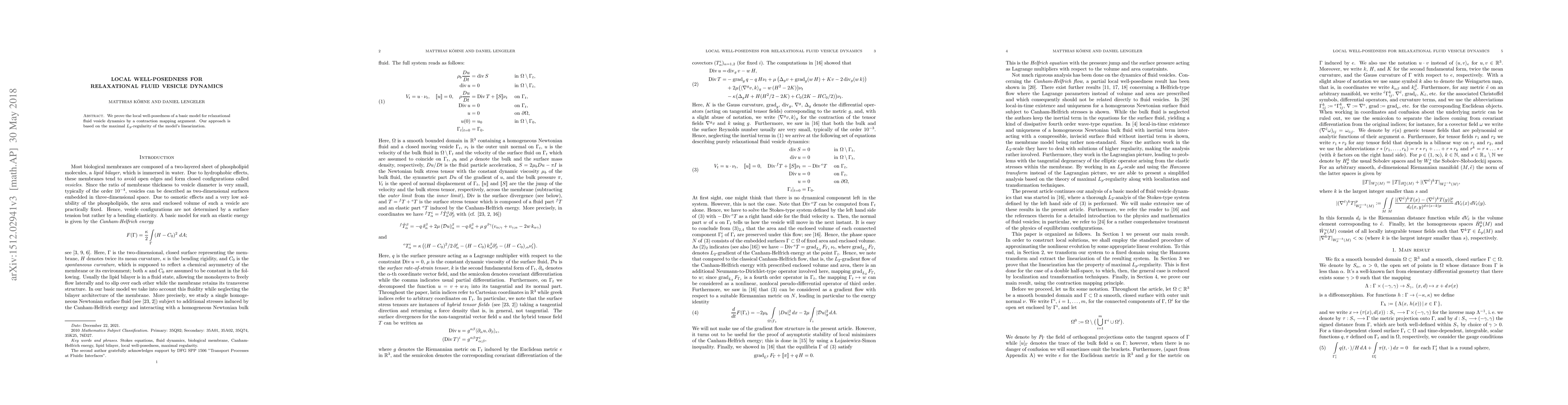We prove the local well-posedness of a basic model for relaxational fluid vesicle dynamics by a contraction mapping argument. Our approach is based on the maximal $L_p$-regularity of the model's linearization.