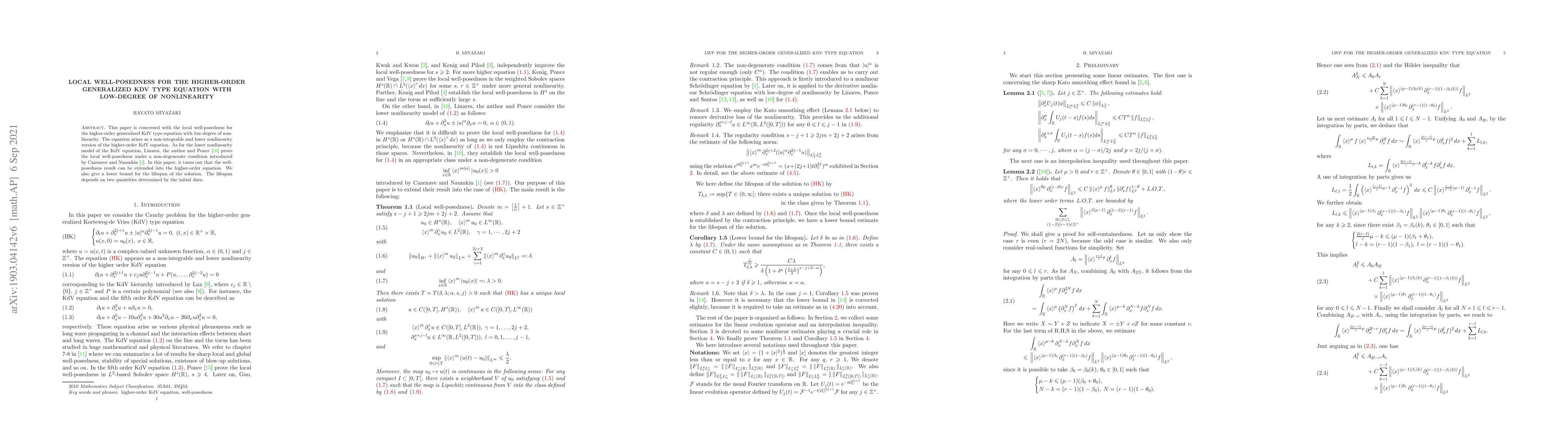 This paper investigates local well-posedness for a higher-order generalized KdV type equation with a low-degree nonlinearity. It extends the well-posedness result to this higher-order model and provides a lower bound for the solution's lifespan based on initial data characteristics.
