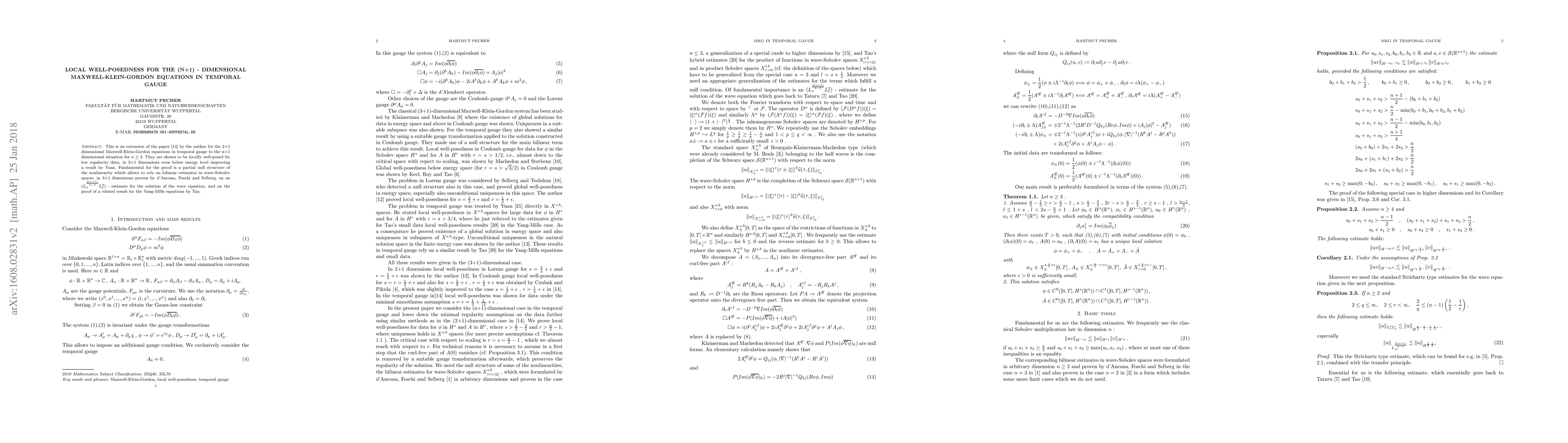 This paper extends the local well-posedness results for the Maxwell-Klein-Gordon equations in temporal gauge from 2+1 to n+1 dimensions ($n \ge 3$), improving previous results by showing well-posedness even below energy level in 3+1 dimensions. The proof leverages the partial null structure of the nonlinearity and utilizes bilinear estimates in wave-Sobolev spaces.