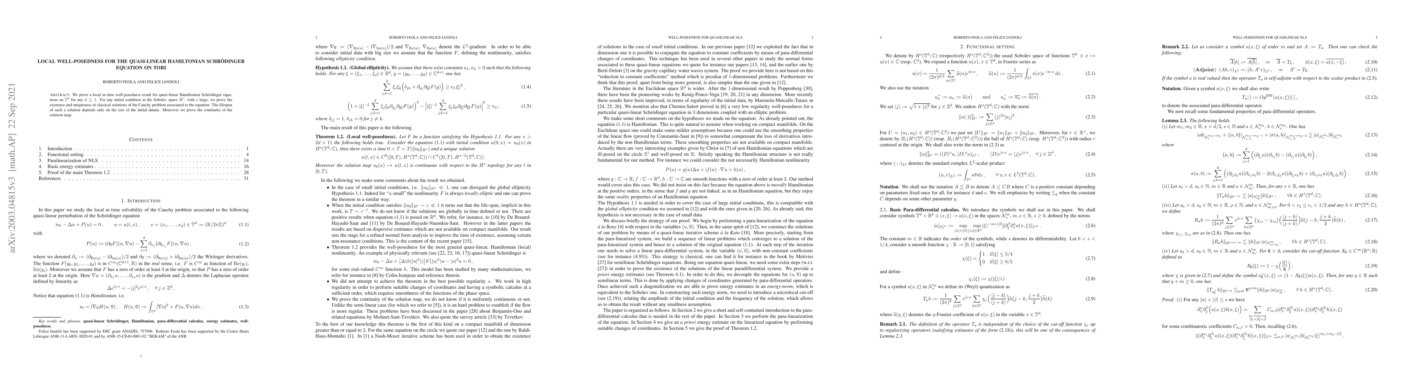 This paper establishes local well-posedness for quasi-linear Hamiltonian Schrödinger equations on tori, proving the existence and uniqueness of classical solutions for initial conditions in high Sobolev spaces. The solution's lifespan is determined by the size of the initial datum, and the solution map is shown to be continuous.