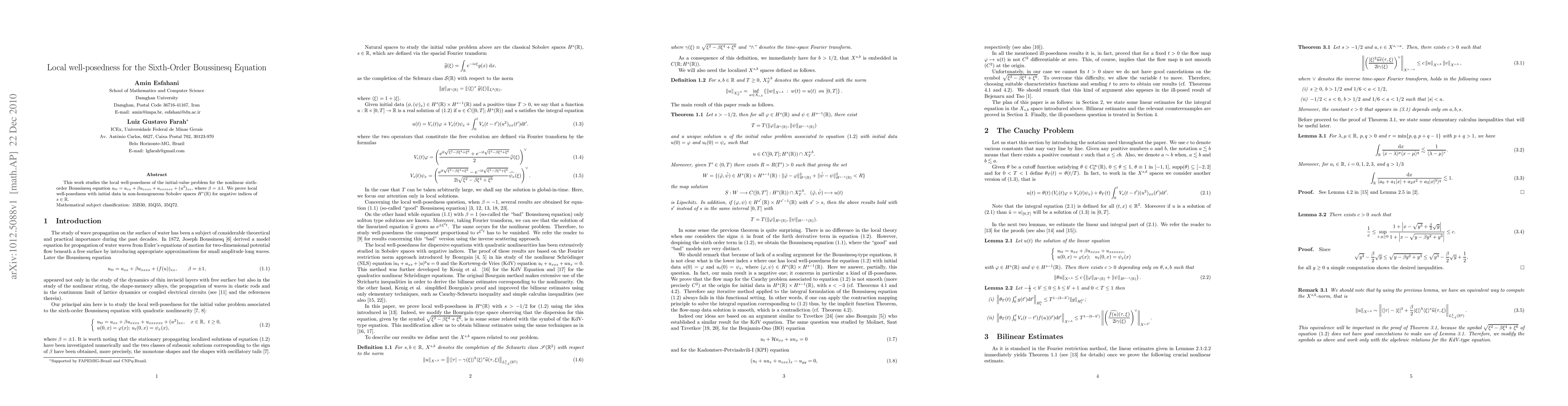 This work studies the local well-posedness of the initial-value problem for the nonlinear sixth-order Boussinesq equation $u_{tt}=u_{xx}+\beta u_{xxxx}+u_{xxxxxx}+(u^2)_{xx}$, where $\beta=\pm1$. We prove local well-posedness with initial data in non-homogeneous Sobolev spaces $H^s(\R)$ for negative indices of $s \in \R$.