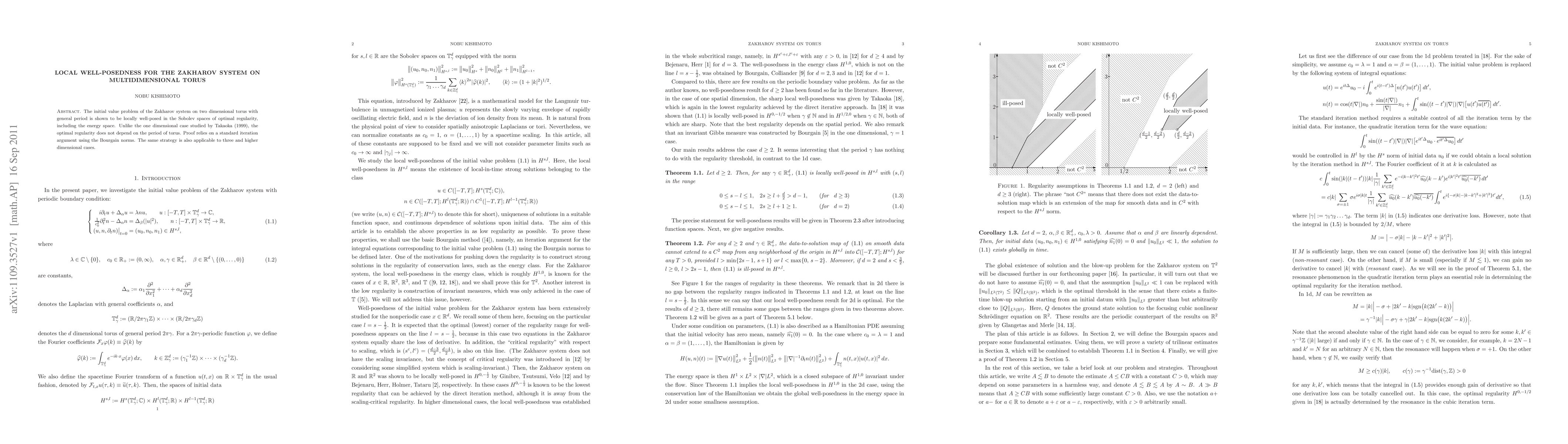 The Zakharov system on a 2D torus is locally well-posed in optimal regularity spaces, including energy space, with a proof relying on a standard iteration argument.
