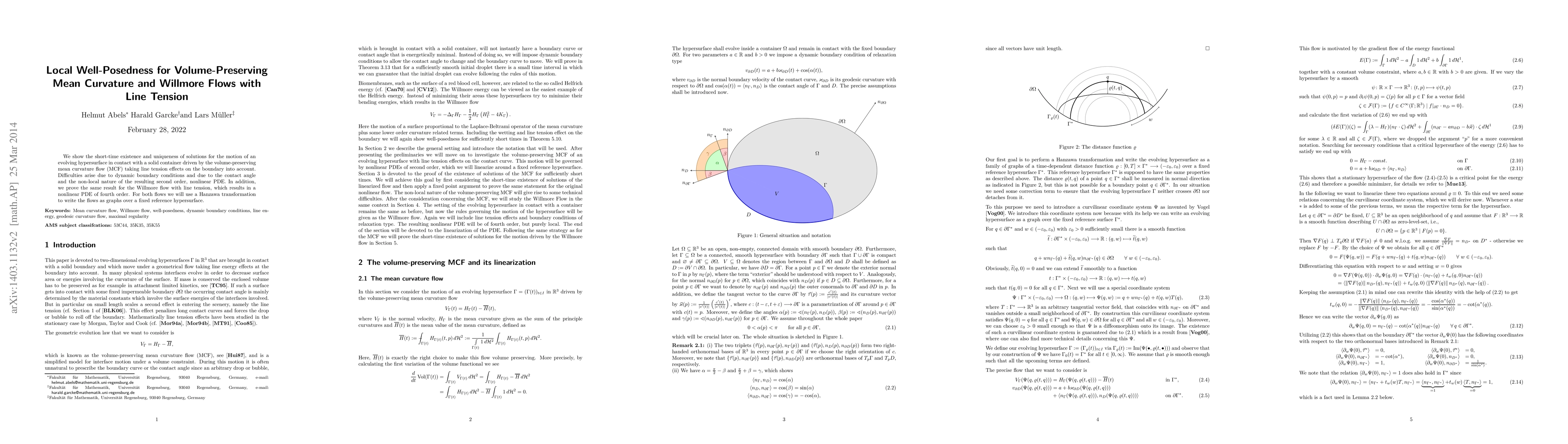 This paper establishes short-time existence and uniqueness of solutions for volume-preserving mean curvature and Willmore flows with line tension, addressing the complexities of dynamic boundary conditions and nonlinear PDEs. It employs a Hanzawa transformation to simplify the analysis by representing the flows as graphs over a fixed reference hypersurface.