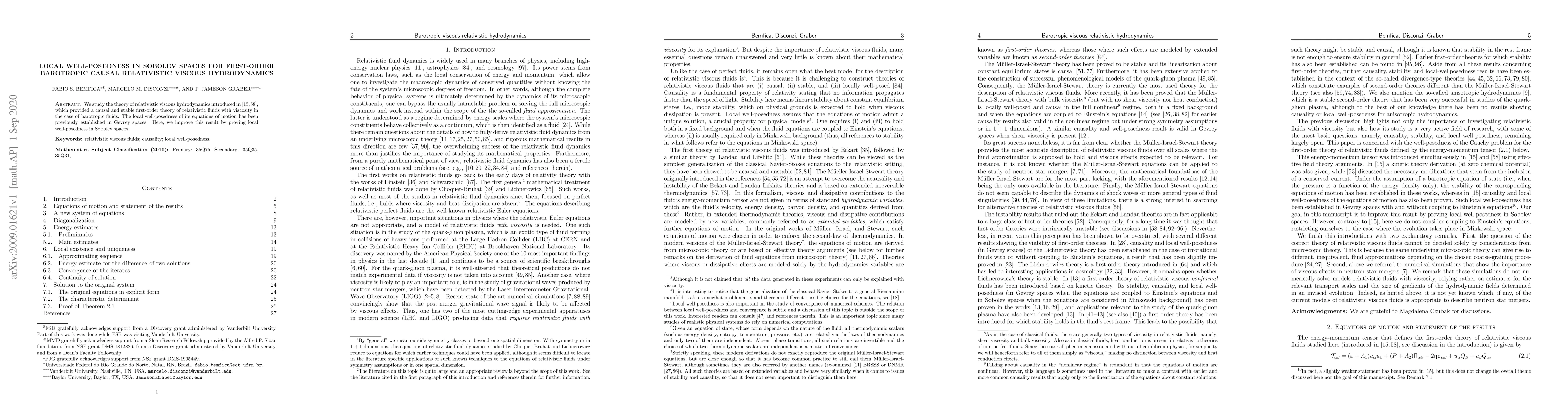 We study the theory of relativistic viscous hydrodynamics introduced in arXiv:1109.0985 and arXiv:1907.12695, which provided a causal and stable first-order theory of relativistic fluids with viscosity in the case of barotropic fluids. The local well-posedness of its equations of motion has been previously established in Gevrey spaces. Here, we improve this result by proving local well-posedness in Sobolev spaces.