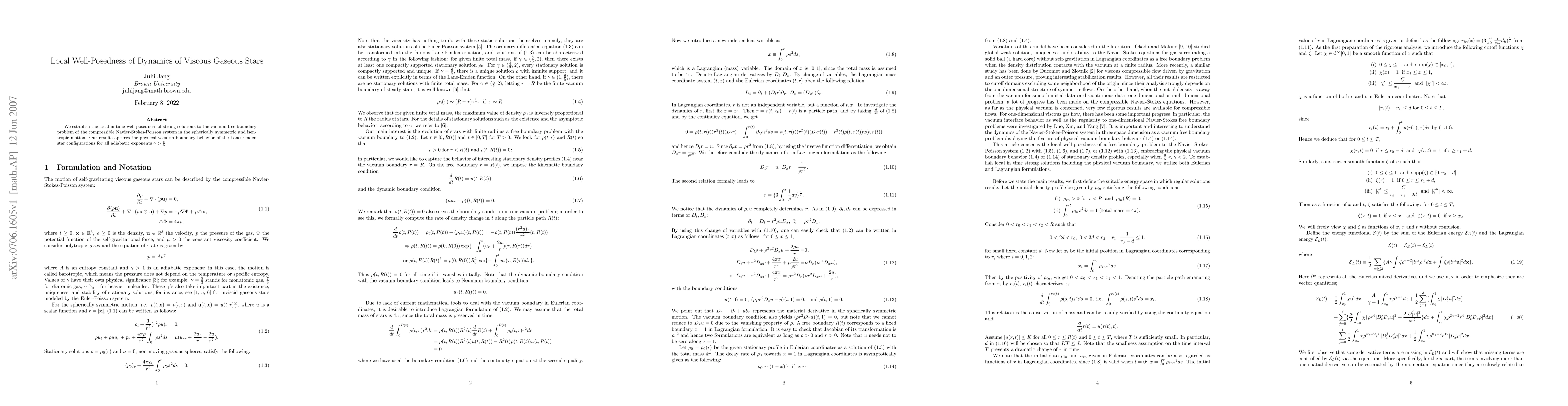 This paper proves local well-posedness for strong solutions to the compressible Navier-Stokes-Poisson system describing viscous gaseous stars in spherical symmetry, focusing on the vacuum boundary behavior for Lane-Emden configurations under isentropic conditions for $\gamma > {6/5}$.