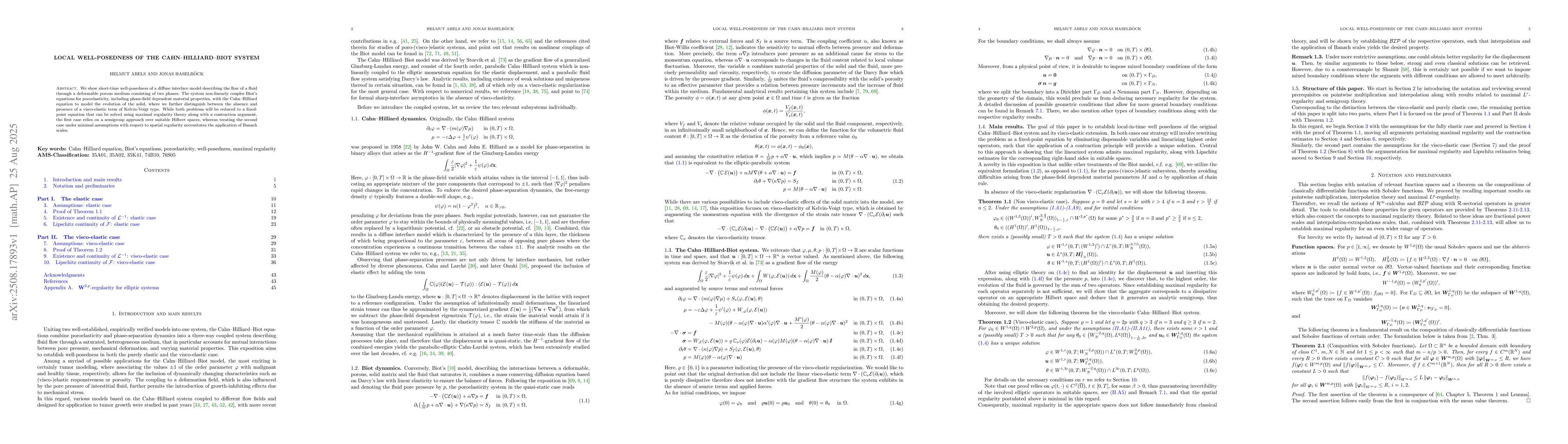 We show short-time well-posedness of a diffuse interface model describing the flow of a fluid through a deformable porous medium consisting of two phases. The system non-linearly couples Biot's equations for poroelasticity, including phase-field dependent material properties, with the Cahn-Hilliard equation to model the evolution of the solid, where we further distinguish between the absence and presence of a visco-elastic term of Kelvin-Voigt type. While both problems will be reduced to a fixed-point equation that can be solved using maximal regularity theory along with a contraction argument, the first case relies on a semigroup approach over suitable Hilbert spaces, whereas treating the second case under minimal assumptions with respect to spatial regularity necessitates the application of Banach scales.
