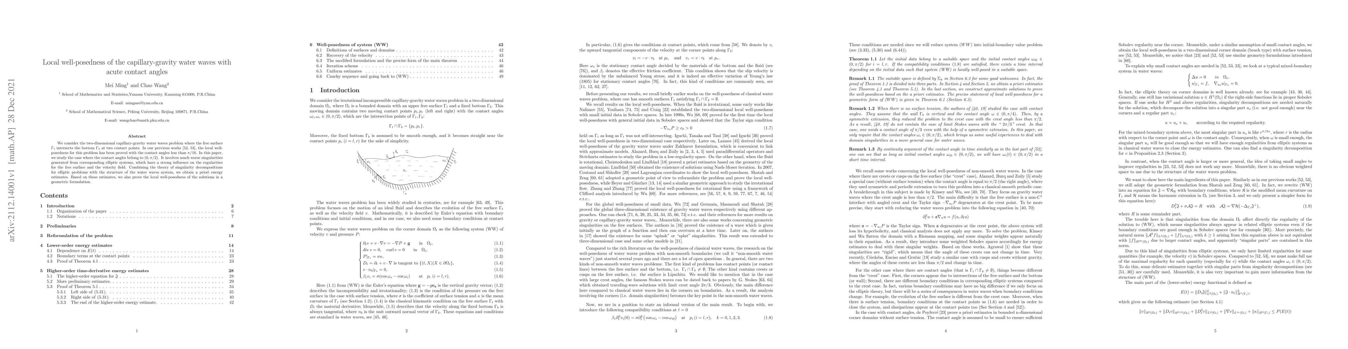 This paper investigates the local well-posedness of two-dimensional capillary-gravity water waves with acute contact angles, extending previous results to broader angle ranges. It employs singularity decompositions and a priori energy estimates to establish the well-posedness in a geometric formulation.