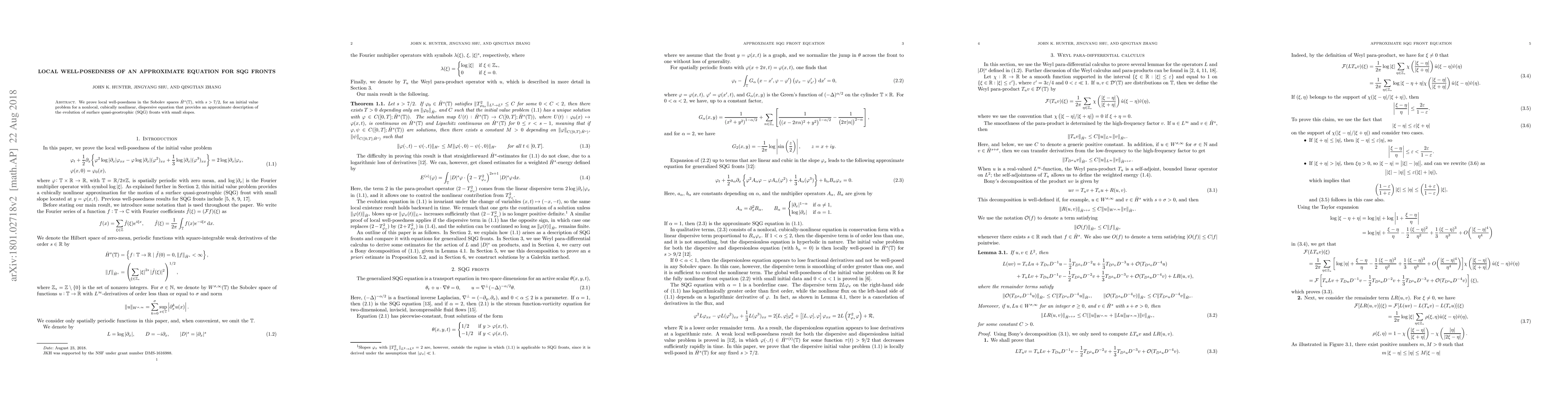 The paper proves local well-posedness of an approximate SQG front equation in Sobolev spaces for s > 7/2, providing a description of small-slope fronts with high accuracy.
