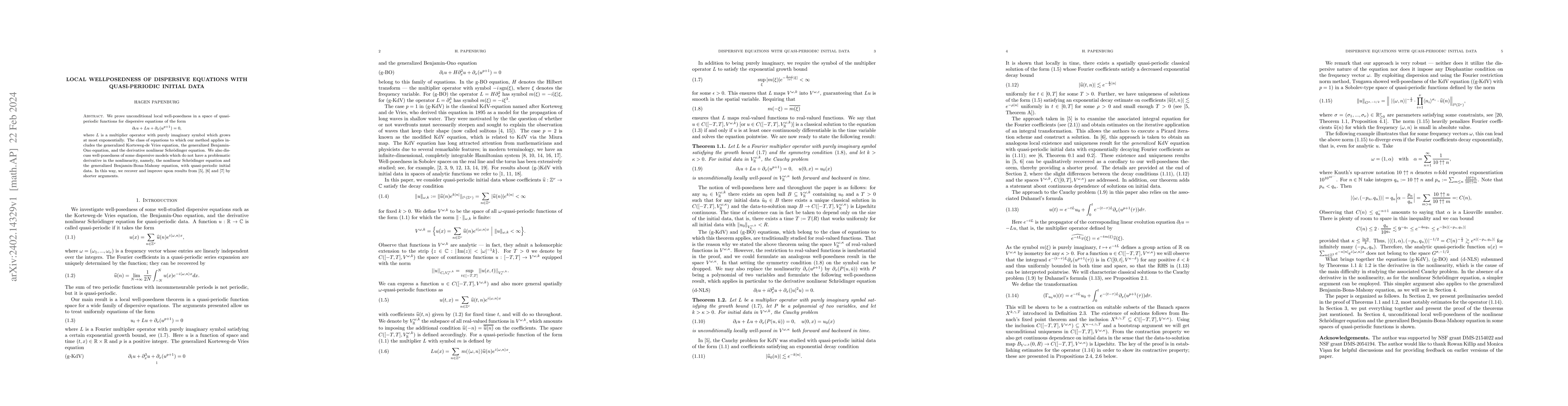 This paper establishes unconditional local well-posedness for dispersive equations with quasi-periodic initial data in a function space of quasi-periodic functions. The method applies to various dispersive models, including generalized KdV and Benjamin-Ono equations, and improves upon previous results with more concise arguments.