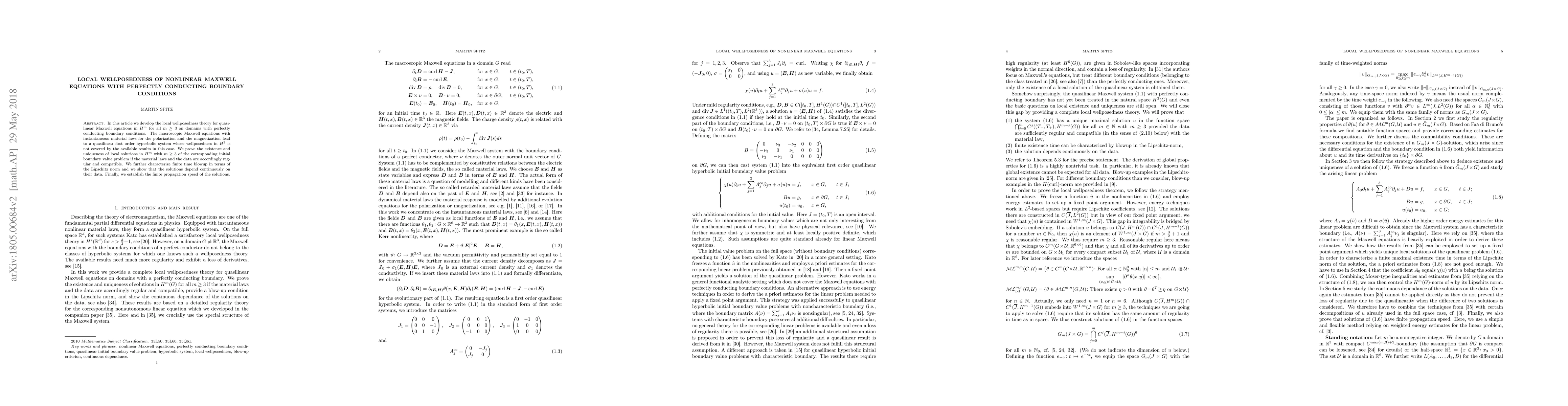 This paper develops local wellposedness theory for quasilinear Maxwell equations in $H^m$ for $m \geq 3$ under perfectly conducting boundary conditions, proving existence, uniqueness, and continuous dependence on data, while also characterizing finite time blowup and finite propagation speed.