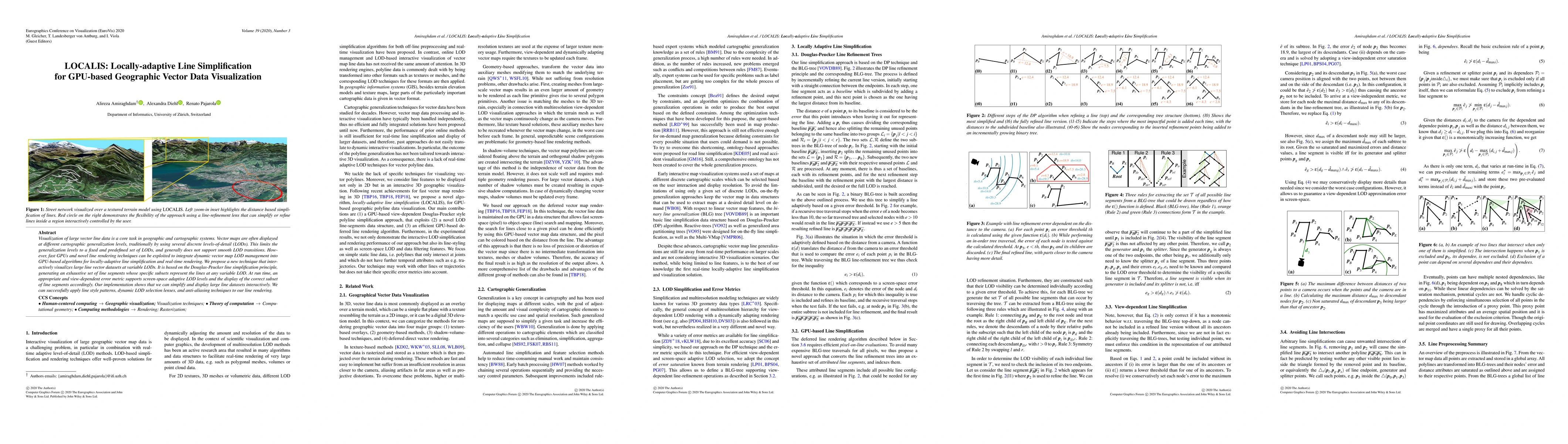 Visualization of large vector line data is a core task in geographic and cartographic systems. Vector maps are often displayed at different cartographic generalization levels, traditionally by using several discrete levels-of-detail (LODs). This limits the generalization levels to a fixed and predefined set of LODs, and generally does not support smooth LOD transitions. However, fast GPUs and novel line rendering techniques can be exploited to integrate dynamic vector map LOD management into GPU-based algorithms for locally-adaptive line simplification and real-time rendering. We propose a new technique that interactively visualizes large line vector datasets at variable LODs. It is based on the Douglas-Peucker line simplification principle, generating an exhaustive set of line segments whose specific subsets represent the lines at any variable LOD. At run time, an appropriate and view-dependent error metric supports screen-space adaptive LOD levels and the display of the correct subset of line segments accordingly. Our implementation shows that we can simplify and display large line datasets interactively. We can successfully apply line style patterns, dynamic LOD selection lenses, and anti-aliasing techniques to our line rendering.