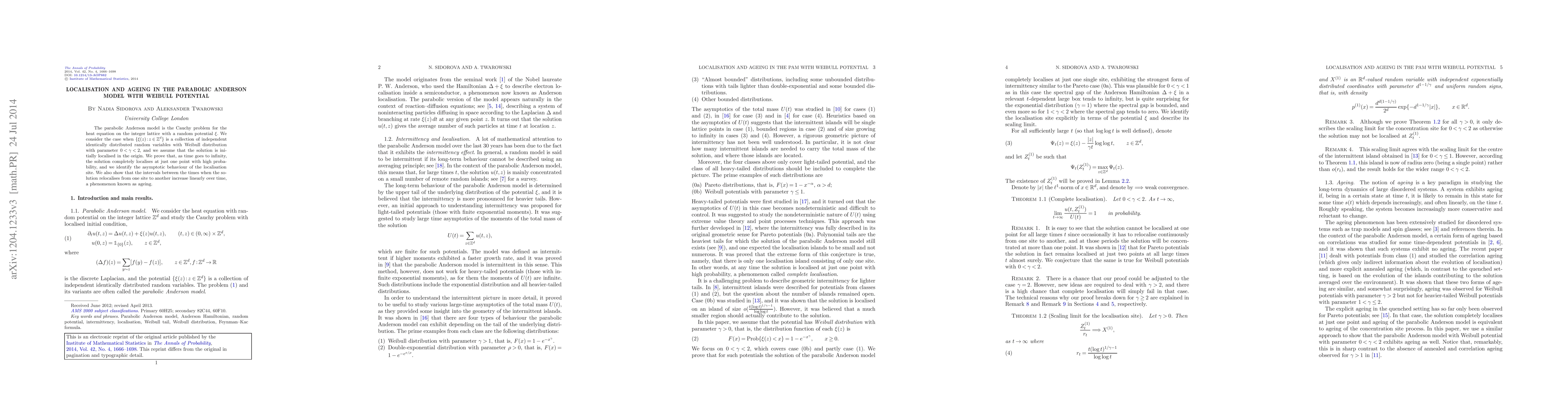 This paper studies the parabolic Anderson model with a Weibull random potential, proving that the localised initial solution eventually localises at a single point with high probability. It also demonstrates an ageing phenomenon where the intervals between relocalisation events increase linearly over time.