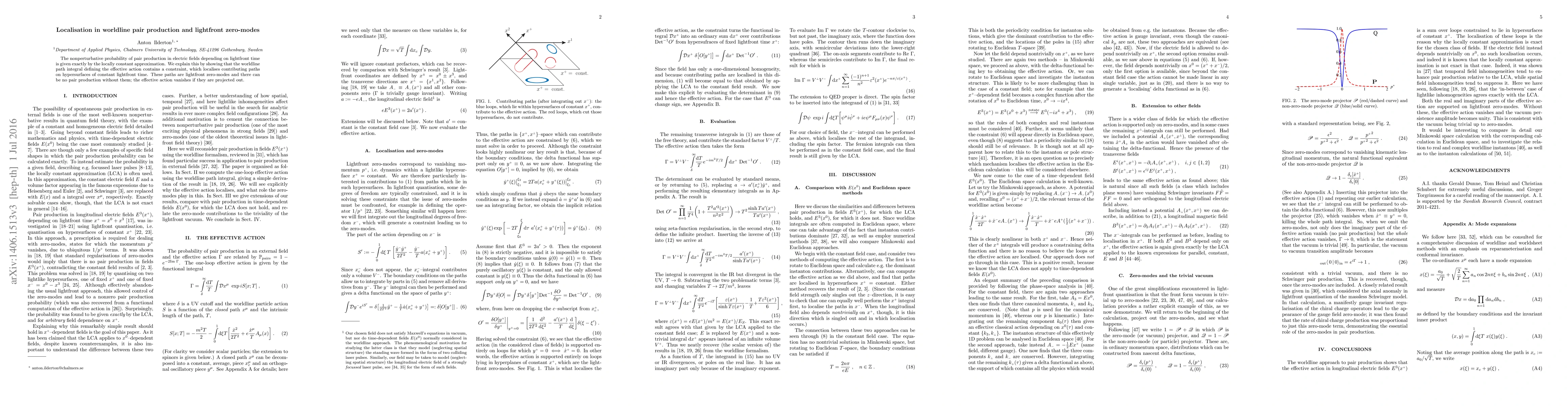 The nonperturbative probability of pair production in electric fields depending on lightfront time is given exactly by the locally constant approximation. We explain this by showing that the worldline path integral defining the effective action contains a constraint, which localises contributing paths on hypersurfaces of constant lightfront time. These paths are lightfront zero-modes and there can be no pair production without them; the effective action vanishes if they are projected out.