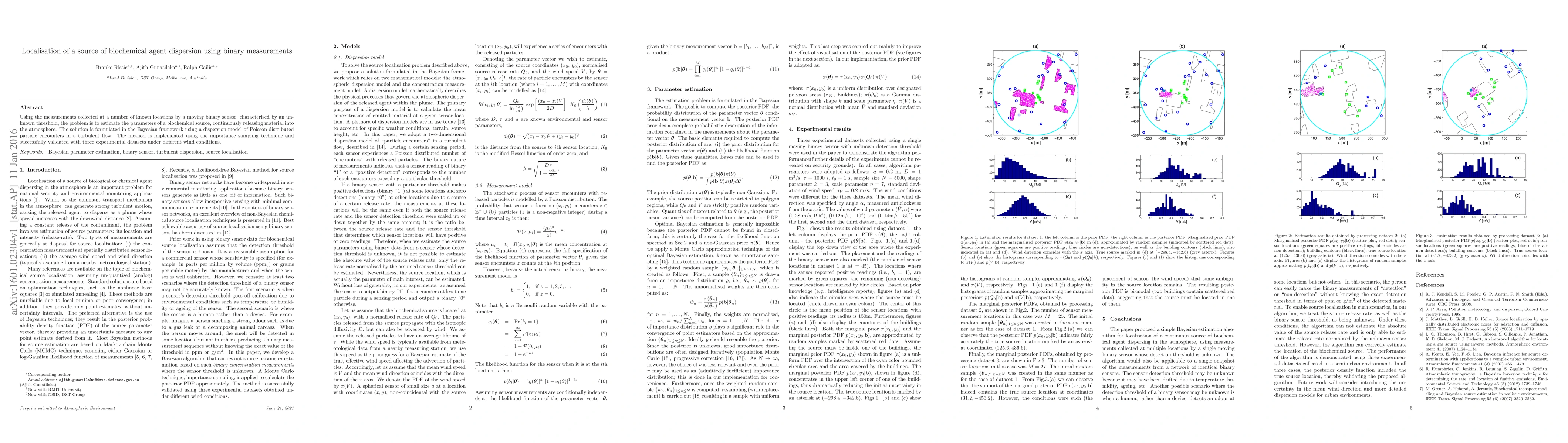 This paper proposes a Bayesian framework for estimating the parameters of a biochemical source using binary sensor measurements, employing an importance sampling technique and validated through experiments under varying wind conditions. The method models particle dispersion in turbulent flow with Poisson-distributed encounters.