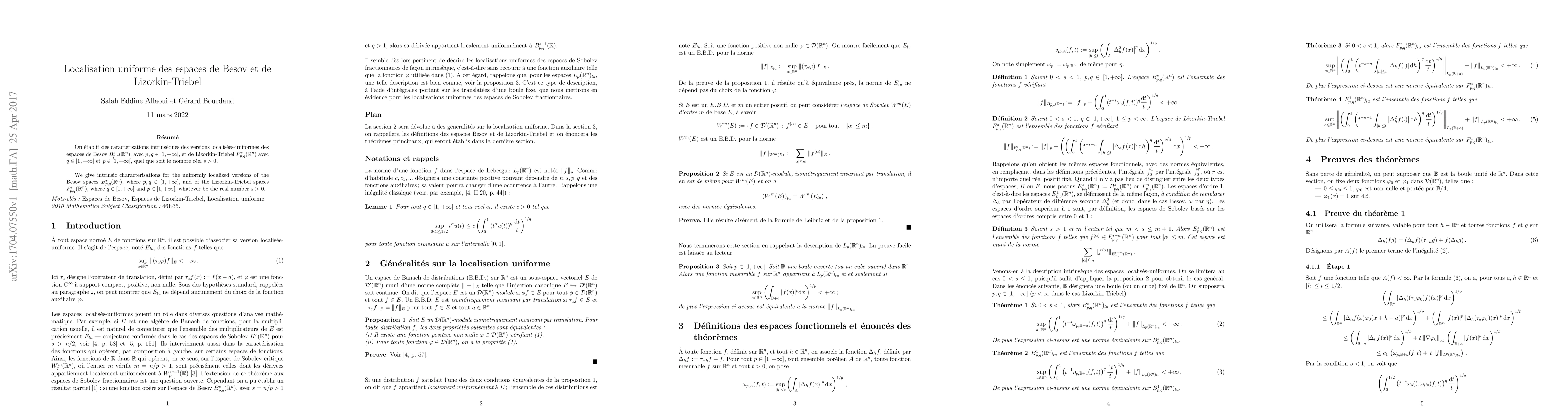 This paper provides intrinsic characterizations for uniformly localized versions of Besov and Lizorkin-Triebel spaces, offering new insights into their properties and applications.