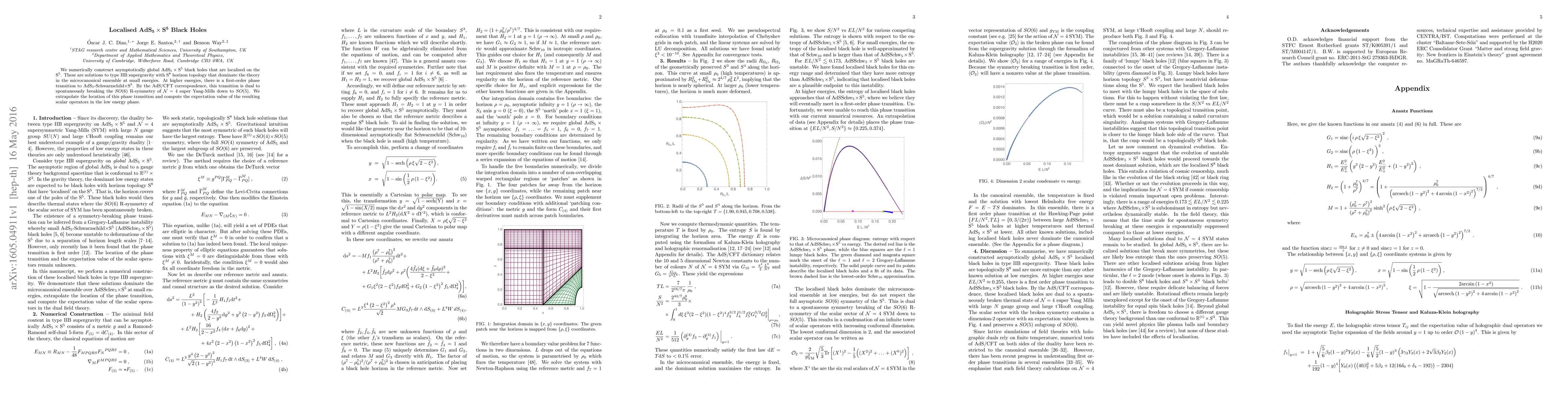 This paper numerically constructs localised black hole solutions in $\mathrm{AdS}_5\times \mathrm{S}^5$ space-time, which dominate at low energies, transitioning to $\mathrm{AdS}_5$-Schwarzschild$\times \mathrm{S}^5$ at higher energies, analogous to a phase transition in $\mathcal N=4$ super Yang-Mills theory.