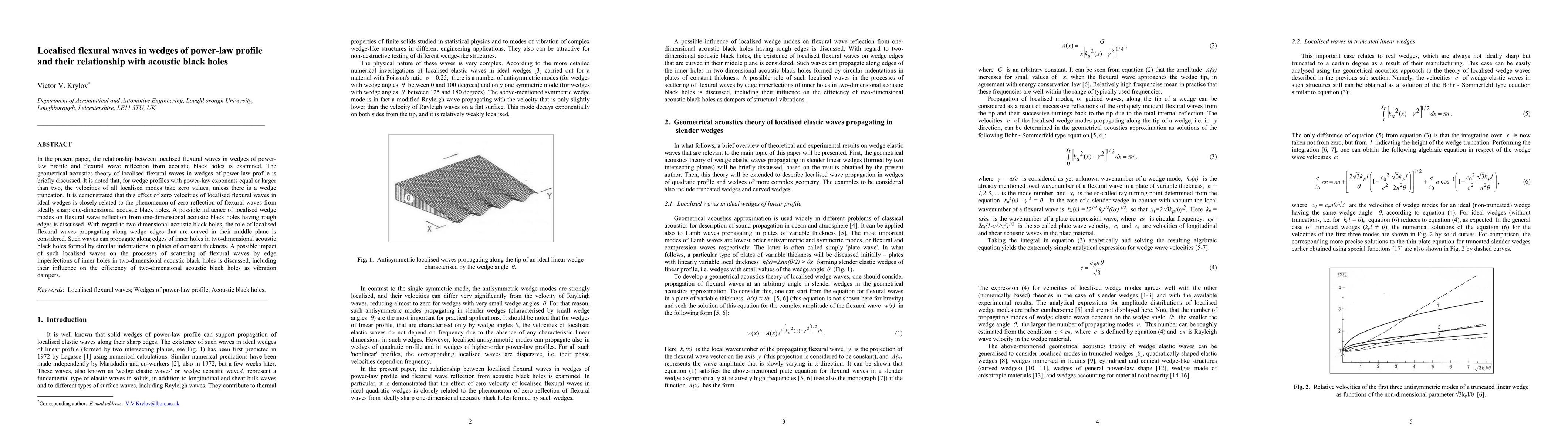 Researchers study localized flexural waves in wedges with power-law profiles and their relationship to acoustic black holes, finding a connection between the two phenomena that affects wave reflection and damping.
