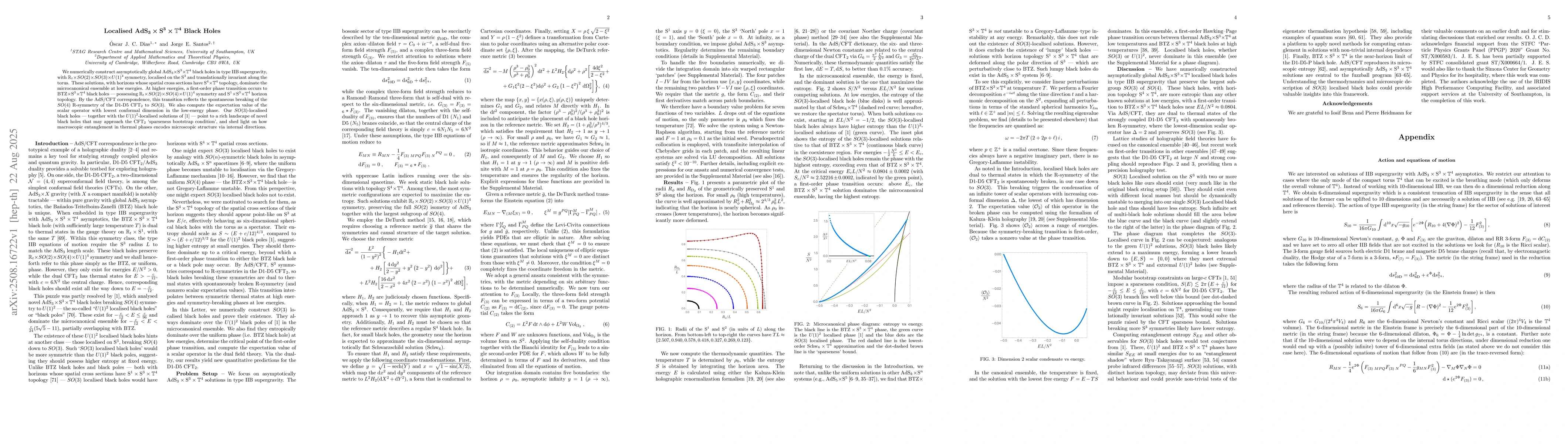 We numerically construct asymptotically global $\mathrm{AdS}_3 \times \mathrm{S}^3 \times \mathbb{T}^4$ black holes in type IIB supergravity, with $\mathbb{R}_t \times SO(2) \times SO(3) \times U(1)^4$ symmetry, localised on the $\mathrm{S}^3$ and translationally invariant along the torus. These solutions, with horizons whose spatial cross sections have $\mathrm{S}^4 \times \mathbb{T}^4$ topology, dominate the microcanonical ensemble at low energies. At higher energies, a first-order phase transition occurs to $\mathrm{BTZ} \times \mathrm{S}^3 \times \mathbb{T}^4$ black holes $-$ possessing $\mathbb{R}_t \times SO(2) \times SO(4) \times U(1)^4$ symmetry and $\mathrm{S}^1 \times \mathrm{S}^3 \times \mathbb{T}^4$ horizon topology. By the AdS/CFT correspondence, this transition reflects the spontaneous breaking of the $SO(4)$ R-symmetry of the D1-D5 CFT$_2$ to $SO(3)$. We also compute the expectation value of the scalar operator with lowest conformal dimension in the low-energy phase. Our $SO(3)$-localised black holes $-$ together with the $U(1)^2$-localised solutions of [1] $-$ point to a rich landscape of novel black holes that may approach the $\mathrm{CFT}_2$ sparseness bootstrap condition, and shed light on how macroscopic entanglement in thermal phases encodes microscopic structure via internal directions.