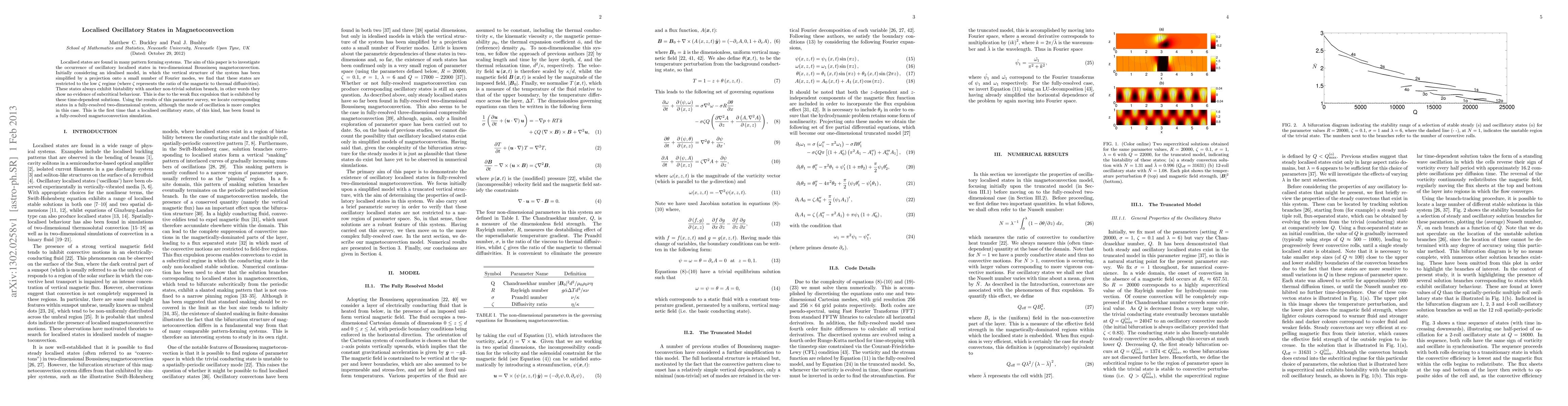 The study investigates localized oscillatory states in two-dimensional Boussinesq magnetoconvection using an idealized model initially, then transitioning to a fully-resolved system. This involves a parameter survey and branch tracking to locate states, with numerical results derived from both truncated and fully-resolved models.
