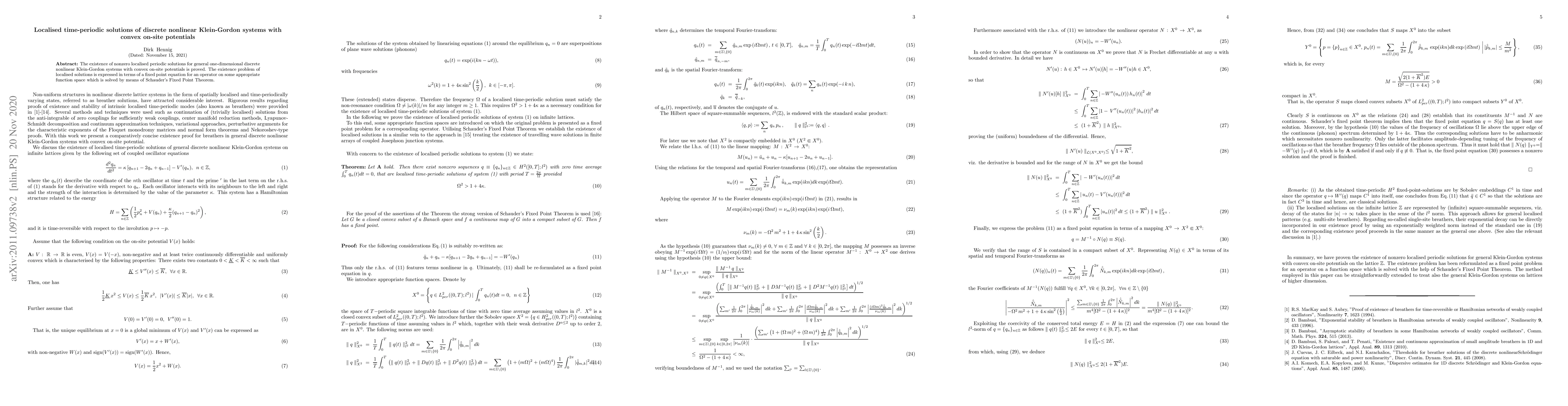 This research paper proves the existence of nonzero localised periodic solutions for one-dimensional discrete nonlinear Klein-Gordon systems with convex on-site potentials, utilizing Schauder's Fixed Point Theorem to solve a fixed point equation in an appropriate function space.