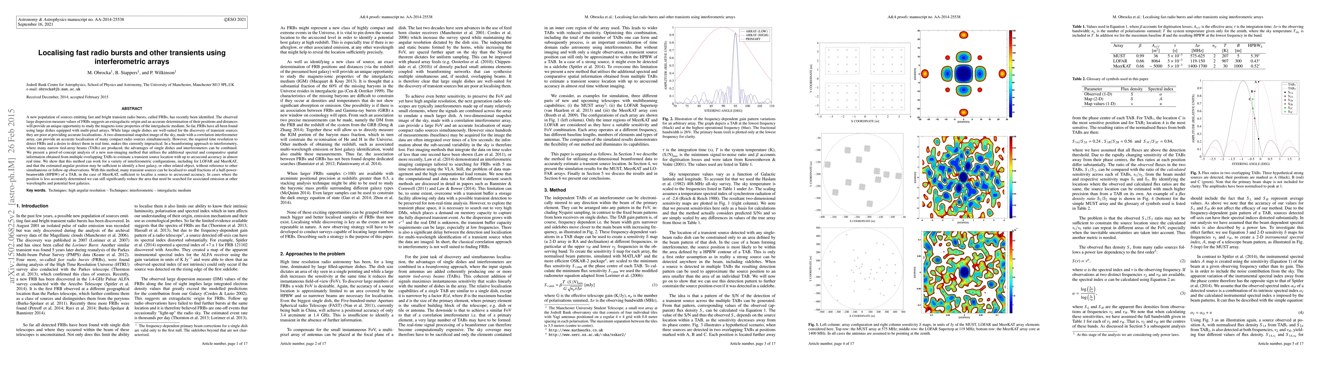 A new population of sources emitting fast and bright transient radio bursts has recently been identified. The observed large dispersion measure values of FRBs suggests an extragalactic origin and an accurate determination of their positions and distances will provide an unique opportunity to study the magneto-ionic properties of the IGM. So far, FRBs have all been found using large dishes equipped with multi-pixel arrays. While large single dishes are well-suited for the discovery of transient sources they are poor at providing accurate localisations. A 2D snapshot image of the sky, made with a correlation interferometer array, can provide an accurate localisation of many compact radio sources simultaneously. However, the required time resolution to detect FRBs and a desire to detect them in real time, makes this currently impractical. In a beamforming approach, where many narrow tied-array beams are produced, the advantages of single dishes and interferometers can be combined. We present a proof-of-concept analysis of a new non-imaging method that utilises the additional spectral and comparative spatial information obtained from multiple overlapping TABs to estimate a transient source location with up to arcsecond accuracy in almost real time. We show that this method can work for a variety of interferometric configurations, including for LOFAR and MeerKAT, and that the estimated angular position may be sufficient to identify a host galaxy without reference to other simultaneous or follow-up observations. With this method, many transient sources can be localised to small fractions of a HPBW of a TAB, in the case of MeerKAT, sufficient to localise a source to arcsecond accuracy. In cases where the position is less accurately determined we can still significantly reduce the area that need be searched for associated emission at other wavelengths and potential host galaxies.