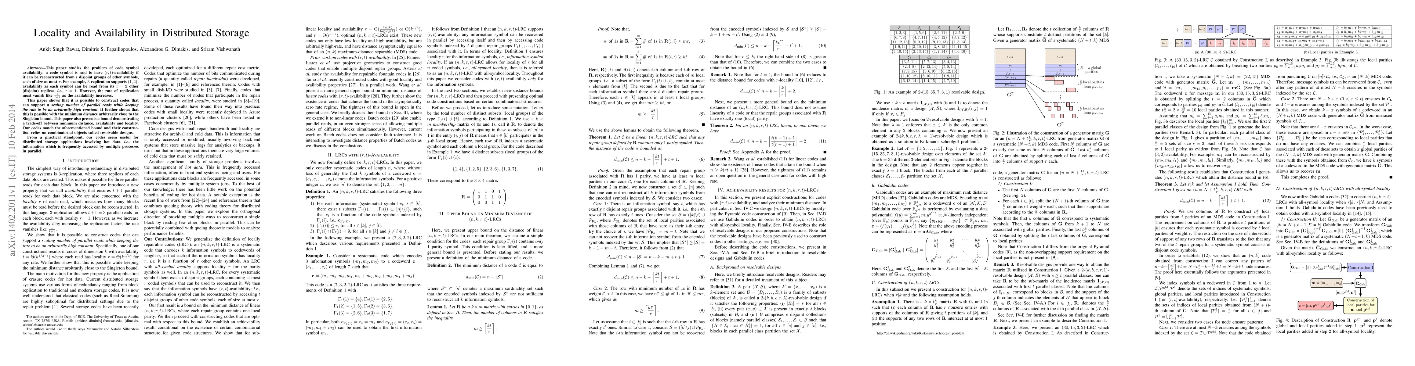This paper proposes codes that achieve high availability and parallel read scalability in distributed storage systems while maintaining a constant rate and minimum distance close to the Singleton bound. The construction leverages combinatorial objects known as resolvable designs, making it practical for applications involving frequently accessed hot data.