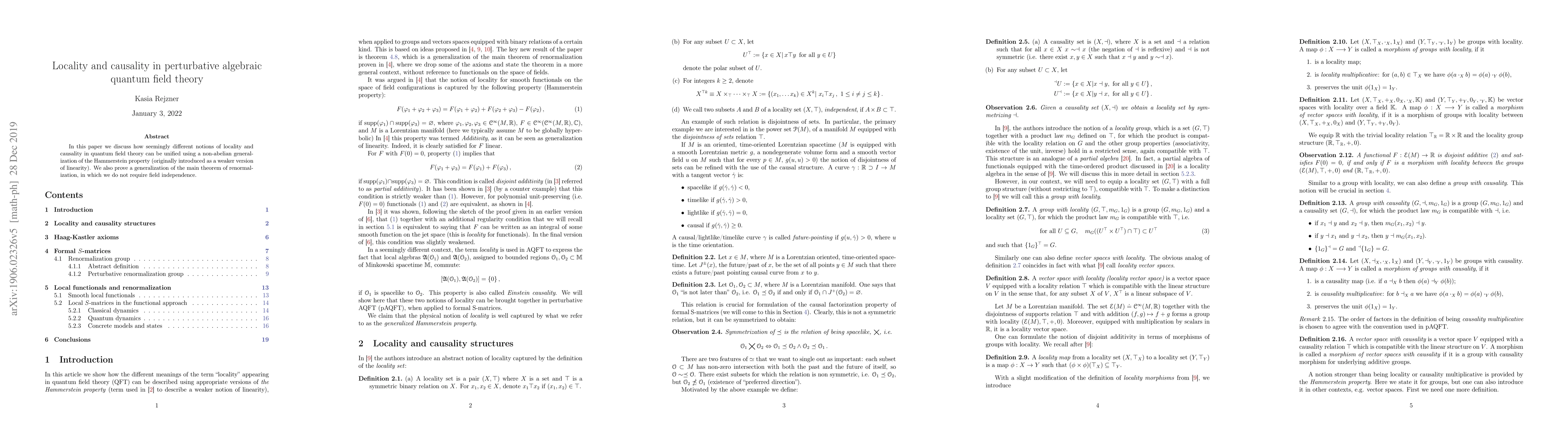 This paper unifies different notions of locality and causality in perturbative AQFT using a non-abelian generalization of the Hammerstein property, and proves a generalized main theorem of renormalization without the assumption of field independence.