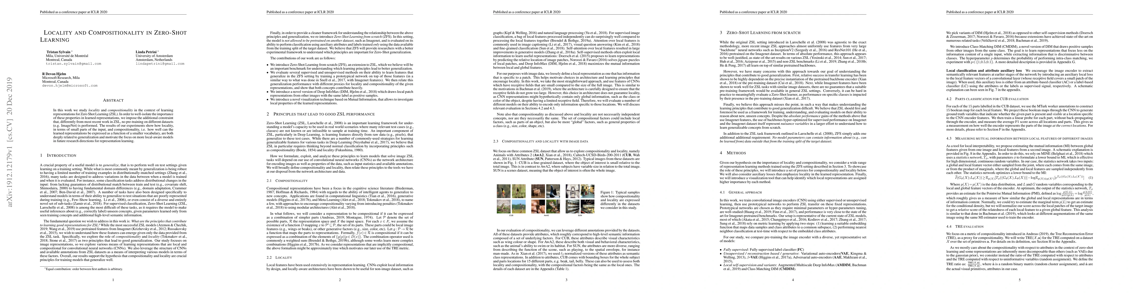 This paper investigates the importance of locality and compositionality in zero-shot learning without pre-training, demonstrating that these properties significantly enhance generalization capabilities. The findings suggest a need for more local-aware models in future representation learning research.