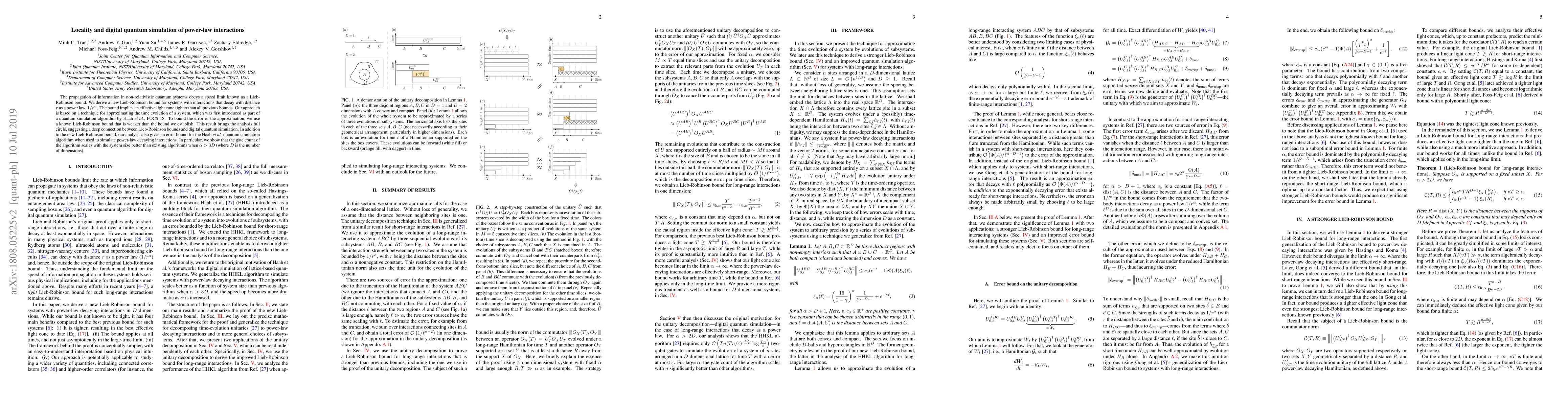 This paper establishes a new Lieb-Robinson bound for quantum systems with power-law interactions, showing tighter constraints than previous bounds. It also analyzes the error in a quantum simulation algorithm, demonstrating improved gate count scaling for certain interaction strengths.