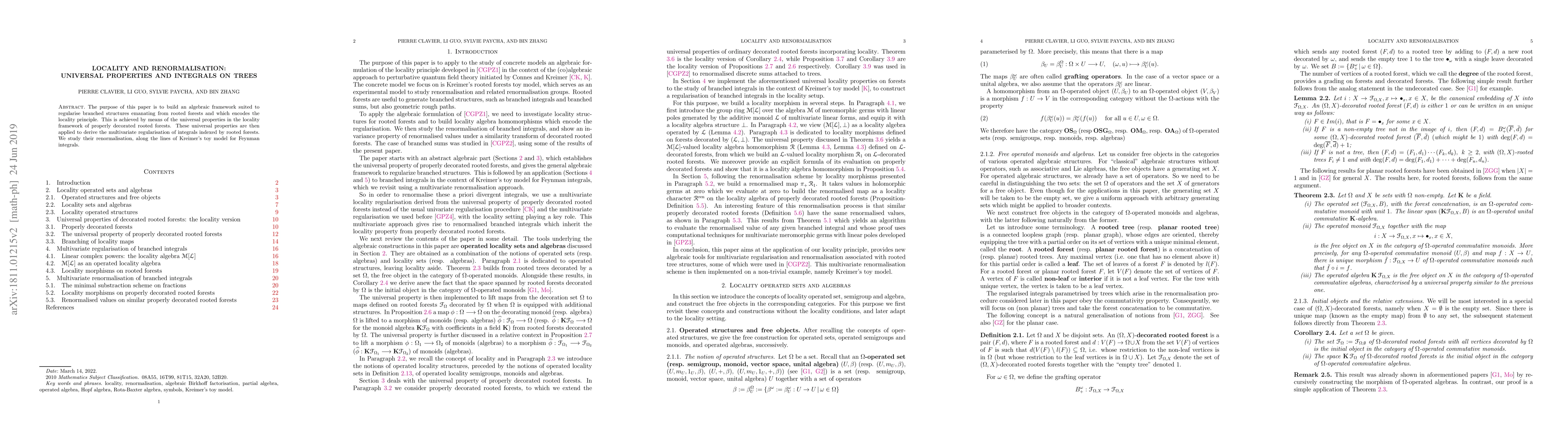 The purpose of this paper is to build an algebraic framework suited to regularise branched structures emanating from rooted forests and which encodes the locality principle. This is achieved by means of the universal properties in the locality framework of properly decorated rooted forests. These universal properties are then applied to derive the multivariate regularisation of integrals indexed by rooted forests. We study their renormalisation, along the lines of Kreimer's toy model for Feynman integrals.