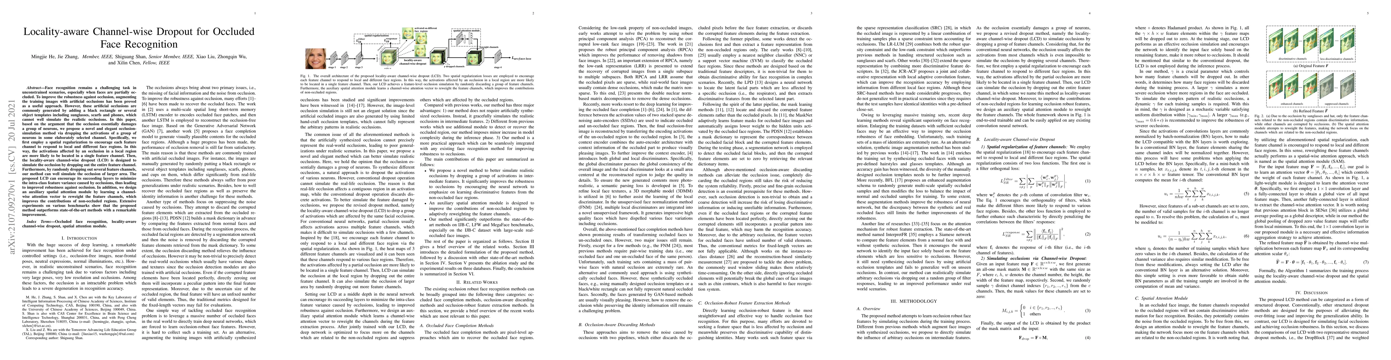 This paper proposes a locality-aware channel-wise dropout (LCD) method to simulate occlusions in face recognition, enhancing robustness by dropping entire feature channels corresponding to occluded regions. An auxiliary spatial attention module further reweights feature channels to emphasize non-occluded regions, leading to superior performance on occluded face recognition benchmarks.
