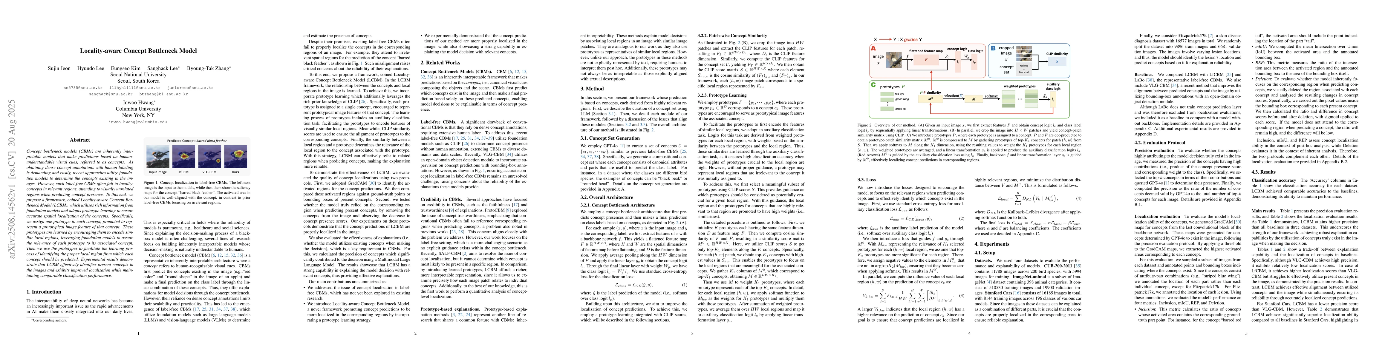 The paper proposes a Locality-aware Concept Bottleneck Model (LCBM) that utilizes rich information from foundation models and prototype learning to ensure accurate spatial localization of concepts. LCBM assigns one prototype to each concept, learned to encode similar local regions relevant to the concept, and uses these prototypes to facilitate the learning process of identifying proper local regions for concept prediction.