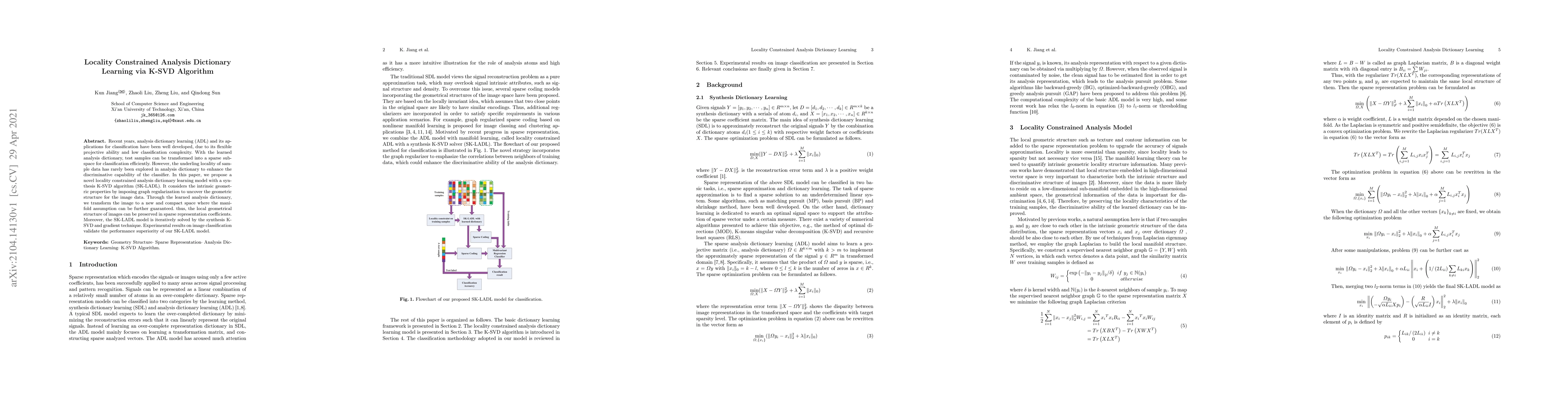 This paper proposes a locality constrained analysis dictionary learning model using a synthesis K-SVD algorithm (SK-LADL) to enhance the discriminative capability of classifiers by incorporating graph regularization to preserve the local geometrical structure of image data. The SK-LADL model demonstrates superior performance in image classification tasks.