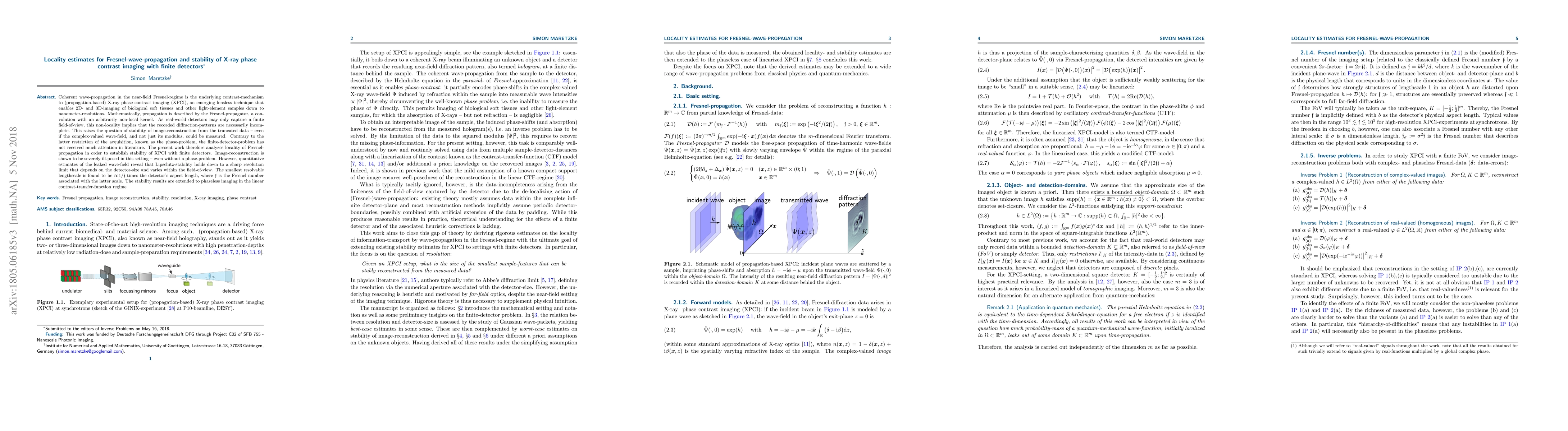Coherent wave-propagation in the near-field Fresnel-regime is the underlying contrast-mechanism to (propagation-based) X-ray phase contrast imaging (XPCI), an emerging lensless technique that enables 2D- and 3D-imaging of biological soft tissues and other light-element samples down to nanometer-resolutions. Mathematically, propagation is described by the Fresnel-propagator, a convolution with an arbitrarily non-local kernel. As real-world detectors may only capture a finite field-of-view, this non-locality implies that the recorded diffraction-patterns are necessarily incomplete. This raises the question of stability of image-reconstruction from the truncated data -- even if the complex-valued wave-field, and not just its modulus, could be measured. Contrary to the latter restriction of the acquisition, known as the phase-problem, the finite-detector-problem has not received much attention in literature. The present work therefore analyzes locality of Fresnel-propagation in order to establish stability of XPCI with finite detectors. Image-reconstruction is shown to be severely ill-posed in this setting -- even without a phase-problem. However, quantitative estimates of the leaked wave-field reveal that Lipschitz-stability holds down to a sharp resolution limit that depends on the detector-size and varies within the field-of-view. The smallest resolvable lengthscale is found to be 1/F times the detector's aspect length, where F is the Fresnel number associated with the latter scale. The stability results are extended to phaseless imaging in the linear contrast-transfer-function regime.