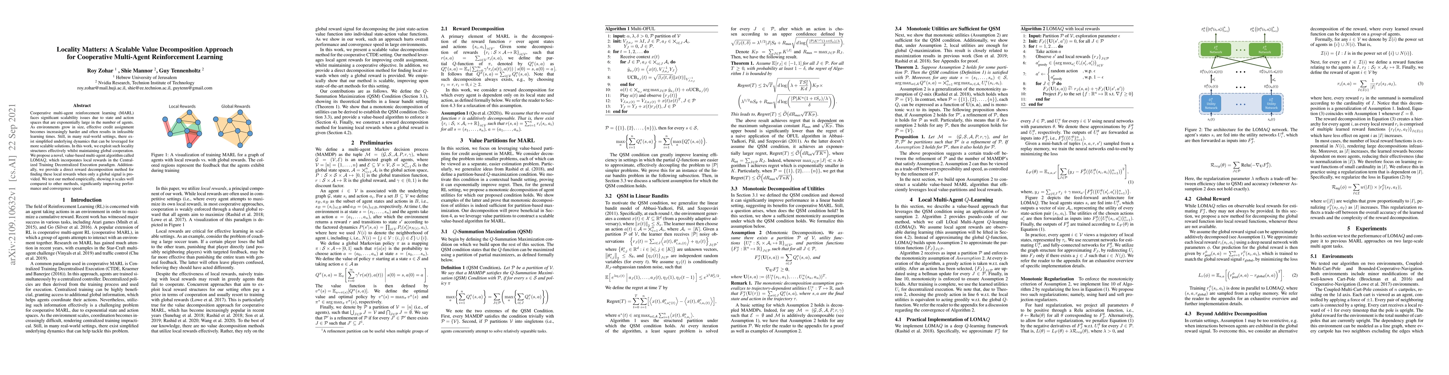 Title: Locality Matters: A Scalable Value Decomposition Approach for Cooperative Multi-Agent Reinforcement Learning Summary: This paper proposes LOMAQ, a scalable value decomposition algorithm for cooperative multi-agent reinforcement learning, leveraging locality structures to improve scalability and performance while maintaining global cooperation. Empirical results show significant improvements in convergence speed and performance compared to existing methods.
