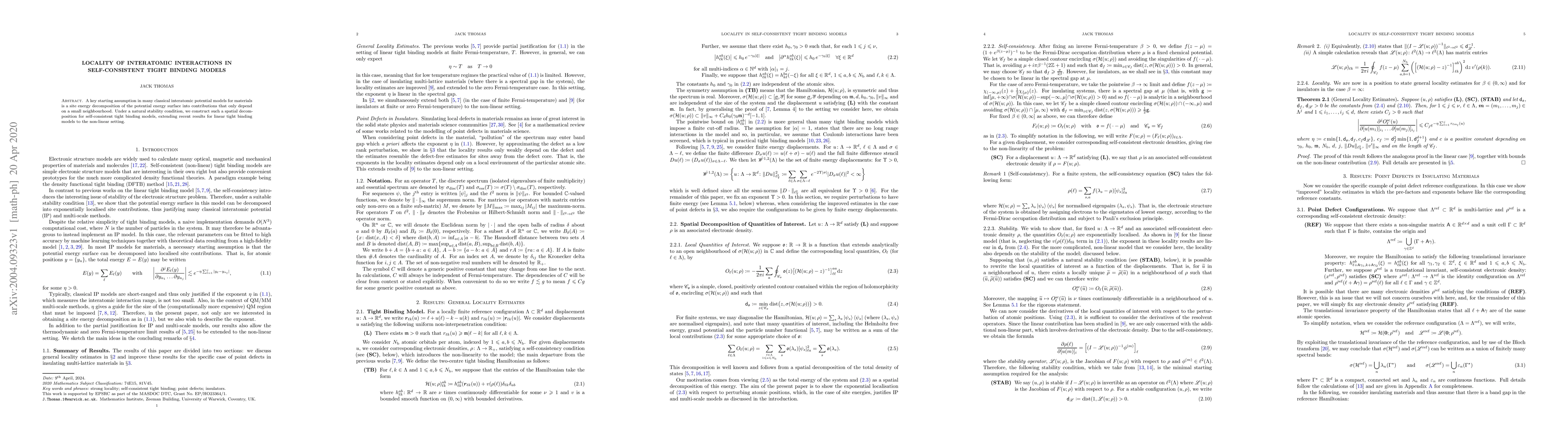 This paper explores the locality assumption in self-consistent tight binding models, constructing a spatial decomposition of the potential energy surface that depends only on a small neighborhood, extending previous results from linear to non-linear settings under a stability condition.