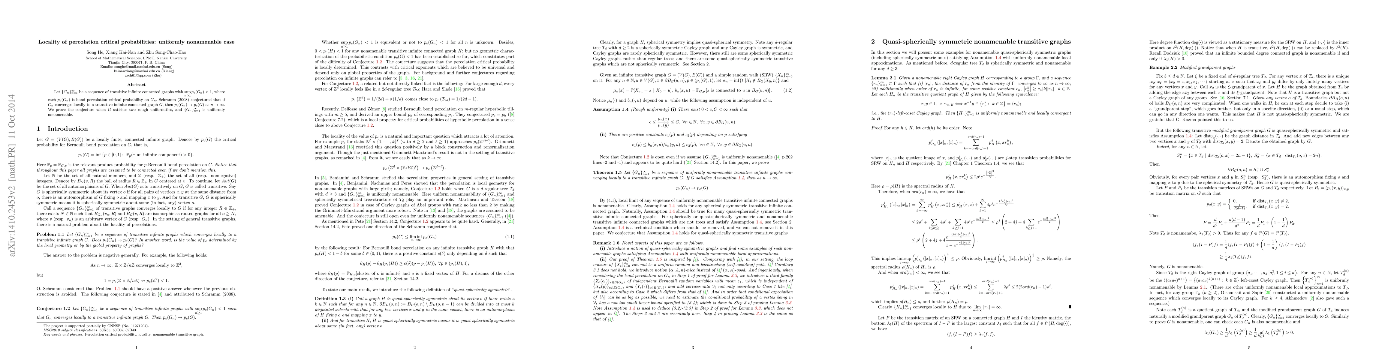 Let $\{G_n\}_{n=1}^{\infty}$ be a sequence of transitive infinite connected graphs with $\sup\limits_{n\geq 1} p_c(G_n) < 1,$ where each $p_c(G_n)$ is bond percolation critical probability on $G_n.$ Schramm (2008) conjectured that if $G_n$ converges locally to a transitive infinite connected graph $G,$ then $p_c(G_n) \rightarrow p_c(G)$ as $n\rightarrow\infty.$ We prove the conjecture when $G$ satisfies two rough uniformities, and $\{G_n\}_{n=1}^{\infty}$ is uniformly nonamenable.