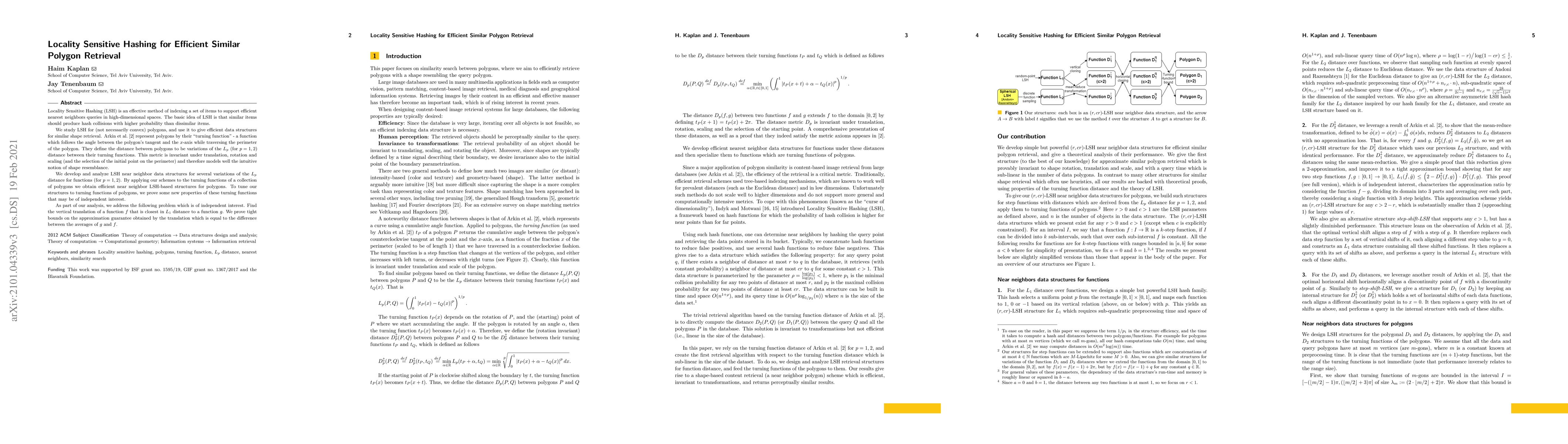 This paper proposes Locality Sensitive Hashing (LSH) for efficient retrieval of similar polygons by indexing their "turning functions" which describe the angles along the polygon's perimeter. The study develops and analyzes LSH structures for $L_p$ distances ($p=1,2$) and proves new properties of turning functions, including tight bounds on the vertical translation that minimizes $L_1$ distance between functions.