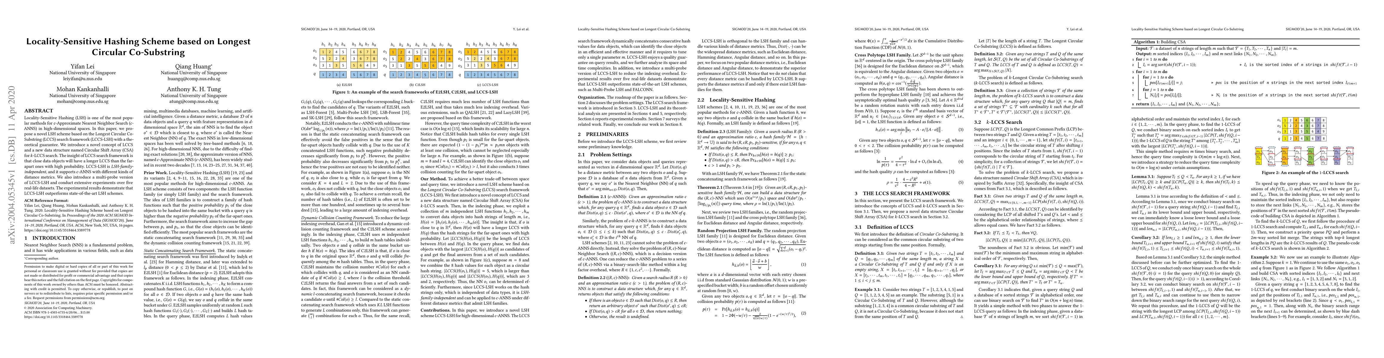 A new Locality-Sensitive Hashing (LSH) scheme based on Longest Circular Co-Substring is proposed for efficient $c$-Approximate Nearest Neighbor Search in high-dimensional spaces, outperforming state-of-the-art LSH schemes.